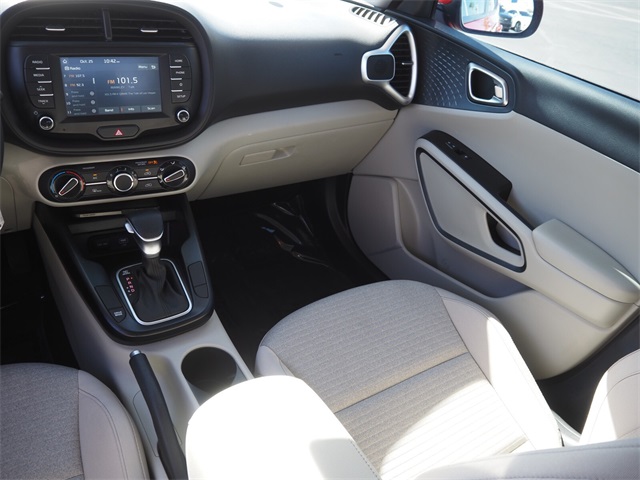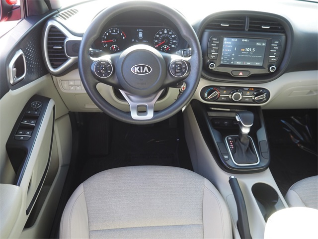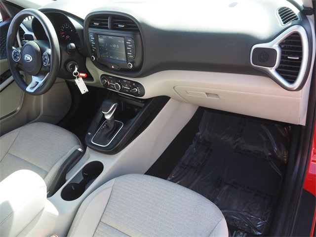 Recent Arrival!Priced below KBB Fair Purchase Price!Odometer is 28664 miles below market average!29/35 City/Highway MPGInferno Red 2020 Kia Soul S FWD IVT 2.0L I4 MPI DOHC 16V LEV3-SULEV30 147hpIf you don't drive here, you can't save here!Awards: * 2020 KBB.com 10 Favorite New-for-2020 Cars * 2020 KBB.com 10 Coolest New Cars Under $20,000Price may not include recon fee. 4-Wheel Disc Brakes, 6 Speakers, 6-Way Adjustable Driver's Seat, ABS brakes, Air Conditioning, Alloy wheels, AM/FM radio, Apple CarPlay & Android Auto, Brake assist, Bumpers: body-color, Carpeted Floor Mats, Delay-off headlights, Driver door bin, Driver vanity mirror, Dual front impact airbags, Dual front side impact airbags, Electronic Stability Control, Exterior Parking Camera Rear, Front anti-roll bar, Front Bucket Seats, Front Center Armrest, Front reading lights, Front wheel independent suspension, Fully automatic headlights, Low tire pressure warning, Occupant sensing airbag, Outside temperature display, Overhead airbag, Overhead console, Passenger door bin, Passenger vanity mirror, Power door mirrors, Power steering, Power windows, Radio: AM/FM/MP3 Audio System, Rear Bumper Applique, Rear window defroster, Rear window wiper, Remote keyless entry, Speed control, Speed-sensing steering, Split folding rear seat, Steering wheel mounted audio controls, Tachometer, Telescoping steering wheel, Tilt steering wheel, Traction control, Trip computer, Variably intermittent wipers, Wheels: 16" x 6.5 Alloy, and Woven Cloth Seat Trim.