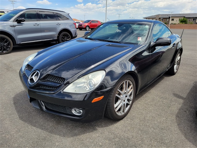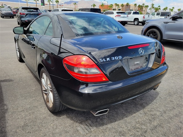 Odometer is 29696 miles below market average!Black 2009 Mercedes-Benz SLK SLK 300 RWD 7-Speed Automatic 3.0L V6 SMPI DOHC 24VIf you don't drive here, you can't save here!Price may not include recon fee. 17" Twin 6-Spoke Alloy Wheels, 4-Wheel Disc Brakes, 8-Way Manual Sports Seats, 9 Speakers, ABS brakes, Air Conditioning, Alloy wheels, AM/FM radio, AM/FM Stereo/In-Dash 6-Disc CD Changer, Brake assist, Bumpers: body-color, CD player, Child-Seat-Sensing Airbag, Convertible HardTop, Convertible roof lining, Delay-off headlights, Driver door bin, Driver vanity mirror, Dual front impact airbags, Dual front side impact airbags, Electronic Stability Control, Emergency communication system: Tele Aid, Four wheel independent suspension, Front anti-roll bar, Front Bucket Seats, Front Center Armrest w/Storage, Front dual zone A/C, Front fog lights, Front reading lights, Fully automatic headlights, Glass rear window, Heated door mirrors, Illuminated entry, Integrated roll-over protection, Knee airbag, Leather Shift Knob, Leather steering wheel, Leather Upholstery, Low tire pressure warning, Occupant sensing airbag, Outside temperature display, Panic alarm, Passenger door bin, Passenger vanity mirror, Power convertible roof, Power door mirrors, Power steering, Power windows, Radio data system, Rear anti-roll bar, Rear fog lights, Rear window defroster, Remote keyless entry, Security system, Speed control, Speed-sensing steering, Sport steering wheel, Steering wheel mounted audio controls, Tachometer, Telescoping steering wheel, Tilt steering wheel, Traction control, Trip computer, Turn signal indicator mirrors, Variably intermittent wipers, and Weather band radio.
