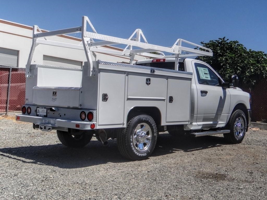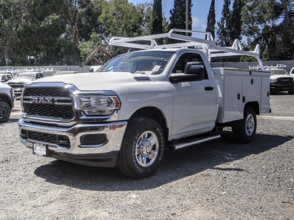 8ft Scelzi Service Body - Treadbright Pop Top Lids, Tapered Leg Ladder Rack w/ Hooks and Forklift Ready Swing Away Cross bars, 6" Diamond Plate Step Bumper, 2.5" Class V Tube Receiver w/ 2" Sleeve, Backup Camera
