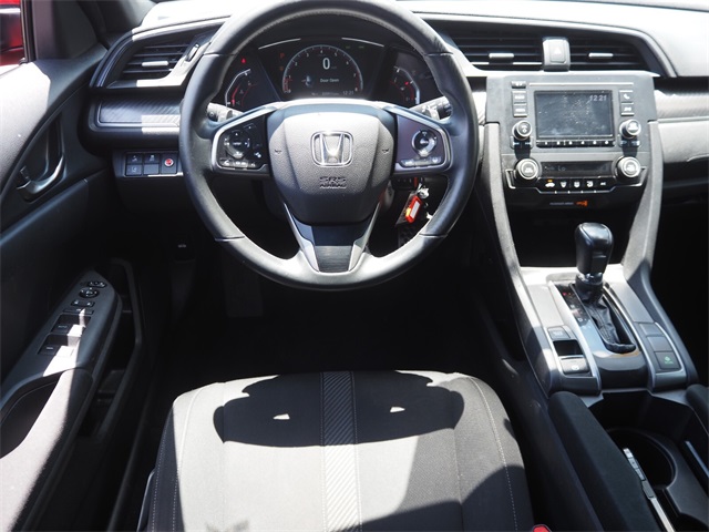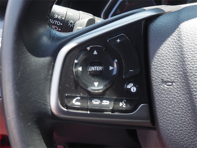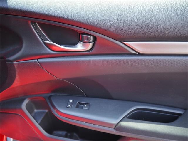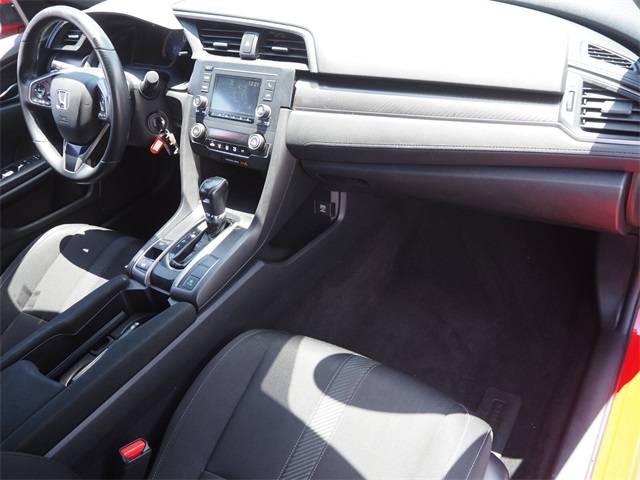 Priced below KBB Fair Purchase Price!Odometer is 17462 miles below market average!Red 2019 Honda Civic Sport FWD CVT 1.5L I4 DOHC 16V Black Cloth.If you don't drive here, you can't save here!Price may not include recon fee. Black Cloth, 4 Speakers, 4-Wheel Disc Brakes, ABS brakes, Air Conditioning, Alloy wheels, AM/FM radio, Automatic temperature control, Brake assist, Bumpers: body-color, Compass, Delay-off headlights, Driver door bin, Driver vanity mirror, Dual front impact airbags, Dual front side impact airbags, Electronic Stability Control, Exterior Parking Camera Rear, Fabric Seating Surfaces, Forward collision: Collision Mitigation Braking System (CMBS) + FCW mitigation, Four wheel independent suspension, Front anti-roll bar, Front Bucket Seats, Front Center Armrest, Front fog lights, Front reading lights, Fully automatic headlights, Illuminated entry, Leather Shift Knob, Low tire pressure warning, Occupant sensing airbag, Outside temperature display, Overhead airbag, Panic alarm, Passenger door bin, Passenger vanity mirror, Power door mirrors, Power steering, Power windows, Radio data system, Radio: 160-Watt Audio System, Rear anti-roll bar, Rear seat center armrest, Rear window defroster, Rear window wiper, Reclining Front Bucket Seats, Remote keyless entry, Security system, Speed control, Speed-sensing steering, Split folding rear seat, Spoiler, Steering wheel mounted audio controls, Tachometer, Telescoping steering wheel, Tilt steering wheel, Traction control, and Trip computer.
