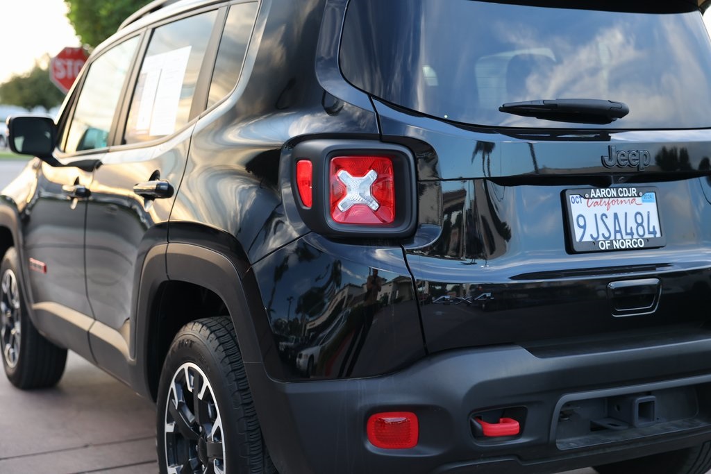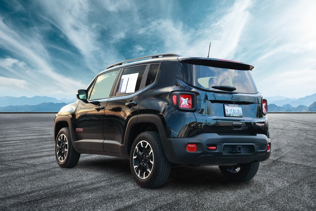 Priced below KBB Fair Purchase Price!FACTORY WARRANTY, LIFE TIME WARRANTY, BELOW AVERAGE ODOMETER, FRESH OIL CHANGE, NEW FILTERS, NEW WIPERS, Renegade Trailhawk, 4D Sport Utility, 1.3L I4, 9-Speed 948TE Automatic, 4WD, 4 Pin Wiring Harness, Alloy wheels, Apple CarPlay/Android Auto, Class III Receiver Hitch, Compass, Dual-Pane Panoramic Power Sunroof, Front dual zone A/C, Front fog lights, Knee airbag, Low tire pressure warning, Navigation System, ParkView Rear Back-Up Camera, Premium Cloth Low-Back Bucket Seats, Radio: Uconnect 4C Nav w/8.4" Display, Trailer Tow Group.For help with any Vehicle needs please call us directly at 951-621-1288.Clean CARFAX.CARFAX One-Owner.