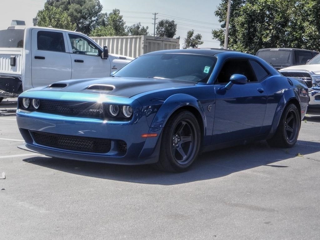 FACTORY WARRANTY, SUPER STOCK, Challenger SRT Hellcat SUPER STOCK, 2D Coupe, 6.2L 8-Cylinder SMPI Supercharged OHV, 8-Speed Automatic, Blue, 1 Year NMCA/NHRA Membership, 18 Speakers Premium Audio System, 220 MPH Primary Speedometer, 3.09 Rear Axle Ratio, Alcantara Appearance Package, Alcantara/Laguna Seats w/Logo, Blind Spot & Cross Path Detection, Brembo 4-Piston Fixed Caliper Brakes, Dark Engine Turn Interior Accents, Driver Convenience Group, harman/kardon Audio Group w/Subwoofer, harman/kardon GreenEdge Amp, Hellcat Logo Nappa/Alcantara Seat, High Performance Engine Controller, High-Intensity Discharge Headlamps, Plus Package, Power Multi-Function Foldaway Mirrors, Power Tilt/Telescope Steering Column, Premium-Stitched Dash Panel, Quick Order Package 27S SRT Super Stock, Radio/Driver Seat/Mirrors Memory, Redeye Badging, SRT Power Chiller, Suede Door Trim Panel w/Map Pocket, Super Stock Suspension, Surround Sound, Trunk Mounted Subwoofer, Ventilated Front Seats, Wheels: 18" x 11" Aluminum, Widebody Fender Flares, Wildwheel Alcantara Steering Wheel.Type your sentence here.Clean CARFAX.CARFAX One-Owner.