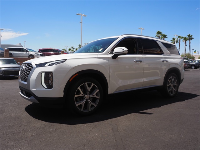 Priced below KBB Fair Purchase Price!19/26 City/Highway MPGHyper White 2022 Hyundai Palisade SEL FWD 8-Speed Automatic with SHIFTRONIC V6If you don't drive here, you can't save here!Price may not include recon fee. Convenience Package, Convenience Package P2 (115-Volt AC Power Outlet, 3rd Row USB Outlets, 7" High-Resolution Cluster Display, Acoustic Front Side Glass, Auto Leveling Rear Suspension, Front Parking Sensors, Hands-Free Smart Liftgate, LED Taillights, Rear Side Window Sunshades, Ultrasonic Rear Occupant Alert, Wheels: 20" x 7.5J Split 5-Spoke Machined Alloy, and Wireless Phone Charger), 3.648 Axle Ratio, 3rd row seats: split-bench, 4-Wheel Disc Brakes, 6 Speakers, ABS brakes, Air Conditioning, Alloy wheels, AM/FM radio, Apple CarPlay & Android Auto, Auto High-beam Headlights, Auto-dimming Rear-View mirror, Automatic temperature control, Brake assist, Bumpers: body-color, Cargo Cover/Screen, Cargo Net, Cargo Tray, Carpeted Floor Mats, Cloth Seat Trim, Delay-off headlights, Driver door bin, Driver vanity mirror, Dual front impact airbags, Dual front side impact airbags, Electronic Stability Control, Four wheel independent suspension, Front anti-roll bar, Front Bucket Seats, Front Center Armrest, Front dual zone A/C, Front reading lights, Fully automatic headlights, Garage door transmitter: HomeLink, Heated door mirrors, Heated Front Bucket Seats, Heated front seats, Illuminated entry, Knee airbag, Low tire pressure warning, Mudguards, Occupant sensing airbag, Outside temperature display, Overhead airbag, Overhead console, Panic alarm, Passenger door bin, Passenger vanity mirror, Power door mirrors, Power driver seat, Power moonroof, Power steering, Power windows, Radio data system, Radio: AM/FM/MP3 Display Audio, Rear air conditioning, Rear anti-roll bar, Rear audio controls, Rear reading lights, Rear window defroster, Rear window wiper, Reclining 3rd row seat, Remote keyless entry, Roof rack: rails only, Security system, Speed control, Speed-sensing steering, Split folding rear seat, Spoiler, Steering wheel mounted audio controls, Tachometer, Telescoping steering wheel, Tilt steering wheel, Traction control, Trip computer, Turn signal indicator mirrors, Variably intermittent wipers, Wheel Locks, and Wheels: 18" x 7.5J Machine Finish Alloy.