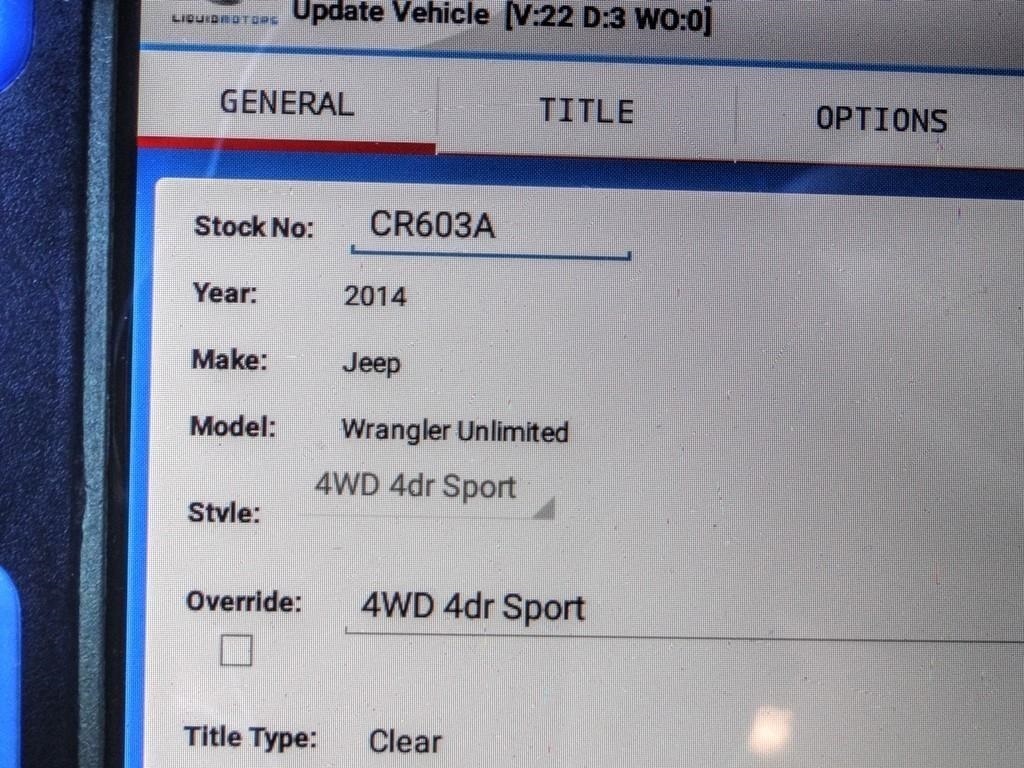 Wrangler Unlimited Sport, 4D Sport Utility, 3.6L V6 24V VVT, 5-Speed Automatic, 4WD, Billet Metallic Clearcoat, Black Cloth, Auto-Dimming Mirror w/Reading Lamp, Black 3-Piece Hard Top, Chrome/Leather Wrapped Shift Knob, Deep Tint Sunscreen Windows, Delete Sunrider Soft Top, Freedom Panel Storage Bag, Leather Wrapped Steering Wheel, Quick Order Package 24S, Rear Window Defroster, Rear Window Wiper/Washer, Tinted Rear Quarter & Liftgate Windows.Type your sentence here.Clean CARFAX.