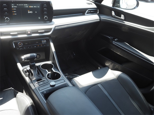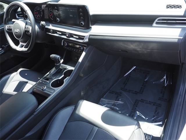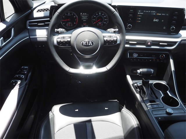 CARFAX One-Owner.Odometer is 19554 miles below market average!27/37 City/Highway MPGEbony Black 2021 Kia K5 GT-Line FWD 8-Speed Automatic 1.6L I4 DGIIf you don't drive here, you can't save here!Price may not include recon fee. GT-Line FWD Premium Package (Forward Collision Avoidance-Assist - Cyclist, Forward Collision Avoidance-Assist - Junction Turn, Gloss Black Pillar & Door Frame Cover, LED Interior Lighting, LED Projection Headlights, Panoramic Sunroof, Smart Cruise Control w/Stop & Go, and Wireless Charger), Kia Certified Pre-Owned Certified, 4-Wheel Disc Brakes, 6 Speakers, ABS brakes, Air Conditioning, Alloy wheels, AM/FM radio, Apple CarPlay & Android Auto, Auto High-beam Headlights, Automatic temperature control, Brake assist, Bumpers: body-color, Carpeted Floor Mats, Cloth/Leatherette Seat Trim, Delay-off headlights, Driver door bin, Driver vanity mirror, Dual front impact airbags, Dual front side impact airbags, Electronic Stability Control, Four wheel independent suspension, Front anti-roll bar, Front Bucket Seats, Front Center Armrest, Front dual zone A/C, Front fog lights, Front reading lights, Fully automatic headlights, Heated door mirrors, Illuminated entry, Knee airbag, Low tire pressure warning, Occupant sensing airbag, Outside temperature display, Overhead airbag, Overhead console, Panic alarm, Passenger door bin, Passenger vanity mirror, Power door mirrors, Power driver seat, Power steering, Power windows, Radio data system, Radio: AM/FM/MP3 Audio System, Rear anti-roll bar, Rear seat center armrest, Rear side impact airbag, Rear window defroster, Remote keyless entry, Security system, Speed control, Speed-sensing steering, Split folding rear seat, Spoiler, Sport steering wheel, Steering wheel mounted audio controls, Tachometer, Telescoping steering wheel, Tilt steering wheel, Traction control, Trip computer, Turn signal indicator mirrors, Variably intermittent wipers, and Wheels: 7.5J x 18" Graphite Machined Finish Alloy.