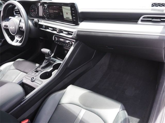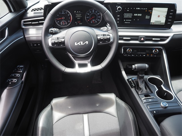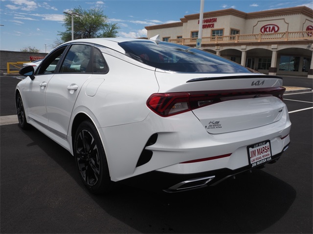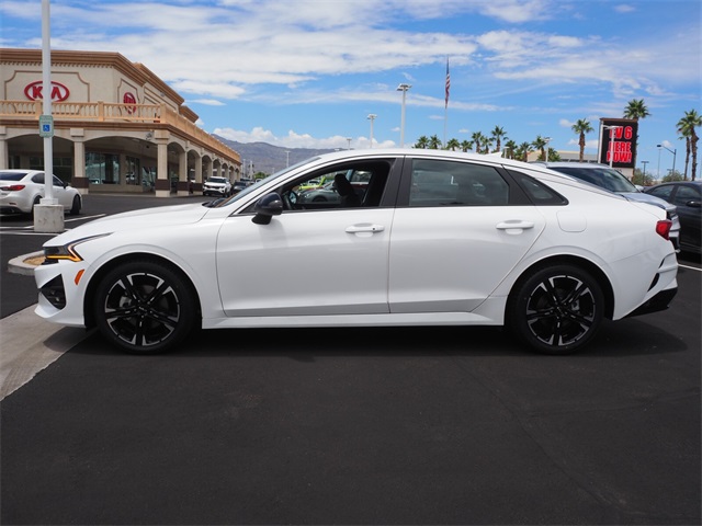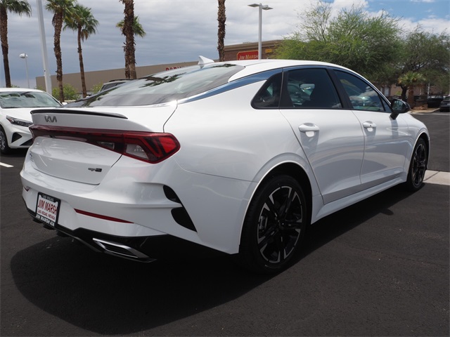 CARFAX One-Owner.27/37 City/Highway MPGGlacial White Pearl 2022 Kia K5 GT-Line FWD 8-Speed Automatic I4If you don't drive here, you can't save here!Price may not include recon fee. Kia Certified Pre-Owned Certified, 4-Wheel Disc Brakes, 6 Speakers, ABS brakes, Air Conditioning, Alloy wheels, AM/FM radio: SiriusXM, Apple CarPlay & Android Auto, Auto High-beam Headlights, Automatic temperature control, Brake assist, Bumpers: body-color, Carpeted Floor Mats, Cloth/Leatherette Seat Trim, Delay-off headlights, Driver door bin, Driver vanity mirror, Dual front impact airbags, Dual front side impact airbags, Electronic Stability Control, Four wheel independent suspension, Front anti-roll bar, Front Bucket Seats, Front Center Armrest, Front dual zone A/C, Front fog lights, Front reading lights, Fully automatic headlights, Heated door mirrors, Illuminated entry, Knee airbag, Low tire pressure warning, Navigation System, Occupant sensing airbag, Outside temperature display, Overhead airbag, Overhead console, Panic alarm, Passenger door bin, Passenger vanity mirror, Power door mirrors, Power driver seat, Power steering, Power windows, Radio data system, Radio: AM/FM/MP3 Audio System, Rear anti-roll bar, Rear seat center armrest, Rear side impact airbag, Rear window defroster, Remote keyless entry, Security system, Speed control, Speed-sensing steering, Split folding rear seat, Spoiler, Sport steering wheel, Steering wheel mounted audio controls, Tachometer, Telescoping steering wheel, Tilt steering wheel, Traction control, Trip computer, Turn signal indicator mirrors, Variably intermittent wipers, and Wheels: 7.5J x 18" Gloss Black Machined Finish Alloy.