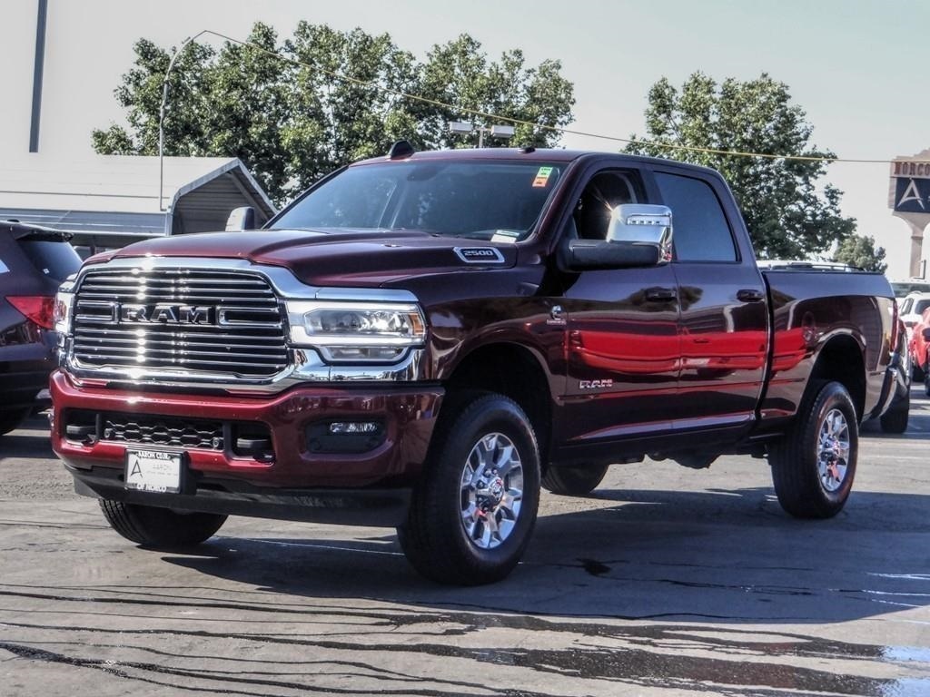FACTORY WARRANTY, 2500 Laramie, 4D Crew Cab, Cummins 6.7L I6 Turbodiesel, 6-Speed Automatic, 4WD, Delmonico Red Pearlcoat, 12" Touchscreen Display, 2nd Row In Floor Storage Bins, 4G LTE Wi-Fi Hot Spot, Alexa Built-In, Apple CarPlay, Auto Adjust In Reverse Exterior Mirrors, Auto Dim Exterior Mirror, Auto High Beam Headlamp Control, Auto Power-Folding Mirrors, Auto-Dimming Exterior Passenger Mirror, Blind Spot & Cross Path Detection, Chrome Exterior Mirrors, Connected Travel & Traffic Services, Connectivity - US/Canada, Disassociated Touchscreen Display, Exterior Mirrors Courtesy Lamps, Exterior Mirrors w/Heating Element, Exterior Mirrors w/Memory, Exterior Mirrors w/Supplemental Signals, Foam Bottle Insert (Door Trim Panel), For Details, Visit DriveUconnect.com, For More Info, Call 800-643-2112, Forward & Reverse Utility Lights, Front LED Fog Lamps, Global Telematics Box Module (TBM), Google Android Auto, GPS Antenna Input, GPS Navigation, HD Radio, Integrated Voice Command w/Bluetooth, Laramie Level 1 Equipment Group, LED Reflector Headlamps, Mirror Running Lights, Navigation System, Off-Road Information Pages, ParkSense Front/Rear Park Assist System, Power Adjust Mirrors, Power Adjustable Convex Aux Mirrors, Power Adjustable Pedals w/Memory, Power Heated Fold Telescopic Mirrors w/Memory, Power Telescoping Mirrors, Radio/Driver Seat/Mirrors/Pedals Memory, Radio: Uconnect 5 Nav w/12.0" Display, Rain Sensitive Windshield Wipers, Rear Power Sliding Window, Rear Window Defroster, Remote Tailgate Release, Selectable Tire Fill Alert, SiriusXM Radio Service, SiriusXM w/360L, Trailer Tow Pages.Type your sentence here.CARFAX One-Owner.