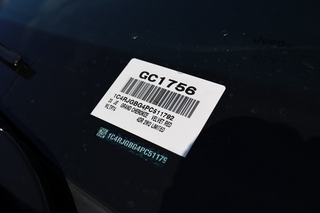Velvet Red Pearlcoat 2023 Jeep Grand Cherokee Limited RWD 8-Speed Automatic 3.6L V6 24V VVT19/26 City/Highway MPG Price includes: $1500 - 2023 CDJ Retail Bonus Cash 23CPA1. Exp. 04/30/2024 $2000 - 2023 CJR Bonus Cash 23CPA. Exp. 04/30/2024