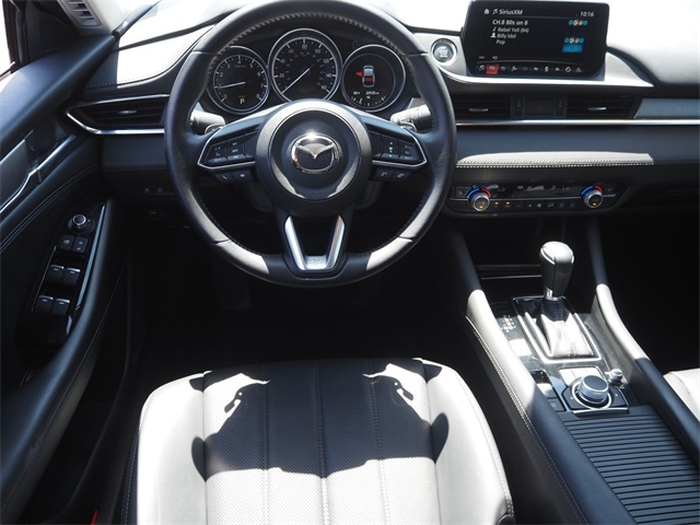 Priced below KBB Fair Purchase Price!23/31 City/Highway MPGJet Black Mica 2021 Mazda Mazda6 Grand Touring FWD 6-Speed Automatic SKYACTIV®-G 2.5L I4 DOHC 16VIf you don't drive here, you can't save here!Price may not include recon fee. 11 Speakers, 3-Level Heated Front Sport Bucket Seats, 4-Wheel Disc Brakes, ABS brakes, Air Conditioning, Alloy wheels, AM/FM radio: SiriusXM, Anti-whiplash front head restraints, Auto High-beam Headlights, Auto-dimming door mirrors, Auto-dimming Rear-View mirror, Automatic temperature control, Brake assist, Bumpers: body-color, Carpet Trunk Cargo Mat, Compass, Delay-off headlights, Driver door bin, Driver vanity mirror, Dual front impact airbags, Dual front side impact airbags, Electronic Stability Control, Emergency communication system: MAZDA CONNECT, Exterior Parking Camera Rear, Four wheel independent suspension, Front anti-roll bar, Front Bucket Seats, Front Center Armrest w/Storage, Front dual zone A/C, Front reading lights, Fully automatic headlights, Garage door transmitter: HomeLink, Heated door mirrors, Heated front seats, Illuminated entry, Leather Shift Knob, Leatherette Seat Trim, Low tire pressure warning, MAZDA CONNECT Infotainment System Voice Command, Occupant sensing airbag, Outside temperature display, Overhead airbag, Overhead console, Panic alarm, Passenger door bin, Passenger vanity mirror, Power door mirrors, Power driver seat, Power moonroof, Power steering, Power windows, Radio data system, Radio: AM/FM/HD, Rain sensing wipers, Rear anti-roll bar, Rear reading lights, Rear seat center armrest, Rear window defroster, Rear window wiper, Remote keyless entry, Speed control, Speed-sensing steering, Split folding rear seat, Stainless Steel Rear Bumper Guard, Steering wheel mounted audio controls, Tachometer, Telescoping steering wheel, Tilt steering wheel, Traction control, Trip computer, Turn signal indicator mirrors, Variably intermittent wipers, and Wheels: 19" x 7.5J w/Gun Metallic Finish.