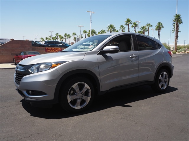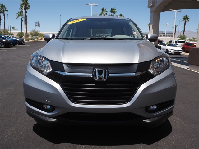 Priced below KBB Fair Purchase Price!Odometer is 44164 miles below market average!28/34 City/Highway MPGLunar Silver Metallic 2017 Honda HR-V EX FWD CVT 1.8L I4 SOHC 16V i-VTECIf you don't drive here, you can't save here!Awards: * 2017 KBB.com 10 Most Awarded Brands * 2017 KBB.com Brand Image AwardsKelley Blue Book Brand Image Awards are based on the Brand Watch(tm) study from Kelley Blue Book Market Intelligence. Award calculated among non-luxury shoppers. For more information, visit www.kbb.com. Kelley Blue Book is a registered trademark of Kelley Blue Book Co., Inc.Price may not include recon fee. 4-Wheel Disc Brakes, 5.436 Axle Ratio, 6 Speakers, ABS brakes, Air Conditioning, Alloy wheels, AM/FM radio, AM/FM/CD Audio System (180 Watts), Automatic temperature control, Brake assist, Bumpers: body-color, CD player, Cloth Seat Trim, Driver door bin, Driver vanity mirror, Dual front impact airbags, Dual front side impact airbags, Electronic Stability Control, Exterior Parking Camera Rear, Front Bucket Seats, Front Center Armrest, Front fog lights, Front reading lights, Front wheel independent suspension, Fully automatic headlights, Heated door mirrors, Heated Front Bucket Seats, Heated front seats, Illuminated entry, Low tire pressure warning, Occupant sensing airbag, Outside temperature display, Overhead airbag, Panic alarm, Passenger door bin, Passenger vanity mirror, Power door mirrors, Power moonroof, Power steering, Power windows, Radio data system, Rear anti-roll bar, Rear window defroster, Rear window wiper, Remote keyless entry, Security system, Speed control, Split folding rear seat, Spoiler, Steering wheel mounted audio controls, Tachometer, Telescoping steering wheel, Tilt steering wheel, Traction control, Trip computer, Turn signal indicator mirrors, and Variably intermittent wipers.