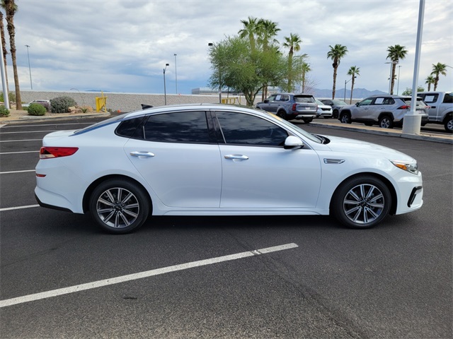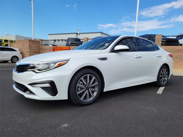 Odometer is 5609 miles below market average!24/33 City/Highway MPGSnow White Pearl 2019 Kia Optima LX FWD 6-Speed Automatic with Sportmatic 2.4L I4 DGI DOHC Black Cloth.If you don't drive here, you can't save here!Awards: * 2019 KBB.com 10 Most Comfortable Cars Under $30,000 * 2019 KBB.com 10 Best Sedans Under $30,000Price may not include recon fee. LX Premium Package (10-Way Power Adjustable Driver's Seat, 17" Alloy Wheels, Auto-Dimming Rear-View Mirror, Dual Zone Automatic Climate Control, Gloss Black Door Pillars, Leather Wrapped Steering Wheel, LED Overhead Front & Rear Reading Lights, and Panoramic Sunroof), Kia Certified Pre-Owned Certified, Black Cloth, 4-Wheel Disc Brakes, 6 Speakers, 6.5J x 16" Silver Alloy Wheels, ABS brakes, Air Conditioning, Alloy wheels, AM/FM radio, Anti-whiplash front head restraints, Apple CarPlay & Android Auto, Auto High-beam Headlights, Brake assist, Bumpers: body-color, Cargo Net, Carpet Floor Mats, Cloth Seat Trim, Delay-off headlights, Driver door bin, Driver vanity mirror, Dual front impact airbags, Dual front side impact airbags, Electronic Stability Control, Four wheel independent suspension, Front anti-roll bar, Front Bucket Seats, Front Center Armrest, Front reading lights, Fully automatic headlights, Heated door mirrors, Illuminated entry, Knee airbag, Low tire pressure warning, Occupant sensing airbag, Outside temperature display, Overhead airbag, Overhead console, Panic alarm, Passenger door bin, Passenger vanity mirror, Power door mirrors, Power steering, Power windows, Radio data system, Radio: AM/FM/MP3 Audio System, Rear anti-roll bar, Rear seat center armrest, Rear window defroster, Remote keyless entry, Security system, Speed control, Speed-sensing steering, Split folding rear seat, Steering wheel mounted audio controls, Tachometer, Telescoping steering wheel, Tilt steering wheel, Traction control, Trip computer, Turn signal indicator mirrors, Variably intermittent wipers, and Wheel Locks.
