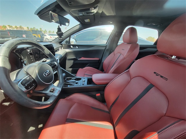 Recent Arrival!CARFAX One-Owner.Priced below KBB Fair Purchase Price!Odometer is 16610 miles below market average!26/34 City/Highway MPGWolf Gray 2021 Kia K5 GT-Line AWD 8-Speed Automatic 1.6L I4 DGIIf you don't drive here, you can't save here!Price may not include recon fee. GT-Line AWD Special Edition Package (Forward Collision Avoidance-Assist - Cyclist, Forward Collision Avoidance-Assist - Junction Turn, Gloss Black Pillar & Door Frame Cover, Highway Driving Assist, Leatherette Seat Trim, LED Interior Lighting, LED Projection Headlights, Navigation-Based Smart Cruise Control - Curve, Panoramic Sunroof, Radio: AM/FM/MP3 Audio System w/Navigation, Smart Cruise Control w/Stop & Go, and Wireless Charger), GT-Line Red Interior Package, Kia Certified Pre-Owned Certified, 4-Wheel Disc Brakes, 6 Speakers, ABS brakes, Air Conditioning, Alloy wheels, AM/FM radio: SiriusXM, Apple CarPlay & Android Auto, Auto High-beam Headlights, Automatic temperature control, Brake assist, Bumpers: body-color, Cargo Net, Cargo Tray, Carpeted Floor Mats, Cloth/Leatherette Seat Trim, Delay-off headlights, Driver door bin, Driver vanity mirror, Dual front impact airbags, Dual front side impact airbags, Electronic Stability Control, Four wheel independent suspension, Front anti-roll bar, Front Bucket Seats, Front Center Armrest, Front dual zone A/C, Front fog lights, Front reading lights, Fully automatic headlights, Heated door mirrors, Heated Front Bucket Seats, Heated front seats, Heated steering wheel, Illuminated entry, Knee airbag, Low tire pressure warning, Occupant sensing airbag, Outside temperature display, Overhead airbag, Overhead console, Panic alarm, Passenger door bin, Passenger vanity mirror, Power door mirrors, Power driver seat, Power moonroof, Power steering, Power windows, Radio data system, Radio: AM/FM/MP3/SiriusXM Audio System, Rear anti-roll bar, Rear seat center armrest, Rear side impact airbag, Rear window defroster, Remote keyless entry, Security system, Speed control, Speed-sensing steering, Split folding rear seat, Spoiler, Sport steering wheel, Steering wheel mounted audio controls, Tachometer, Telescoping steering wheel, Tilt steering wheel, Traction control, Trip computer, Turn signal indicator mirrors, Variably intermittent wipers, Wheel Locks, and Wheels: 7.5J x 18" Graphite Machined Finish Alloy.
