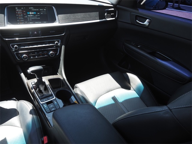 Recent Arrival!CARFAX One-Owner.27/37 City/Highway MPGEbony Black 2020 Kia Optima EX Premium FWD 7-Speed Automatic 1.6L I4 DOHC Black Leather.If you don't drive here, you can't save here!Price may not include recon fee. EX Gray Interior Color Package (Two-Tone Leather Seats), Kia Certified Pre-Owned Certified, Black Leather, 10 Speakers, 4-Wheel Disc Brakes, ABS brakes, Air Conditioning, Alloy wheels, AM/FM radio: SiriusXM, Anti-whiplash front head restraints, Apple CarPlay & Android Auto, Auto High-beam Headlights, Auto-dimming Rear-View mirror, Automatic temperature control, Brake assist, Bumpers: body-color, Cargo Net, Carpet Floor Mats, Delay-off headlights, Driver door bin, Driver vanity mirror, Dual front impact airbags, Dual front side impact airbags, Electronic Stability Control, Emergency communication system: UVO eServices, Four wheel independent suspension, Front anti-roll bar, Front Bucket Seats, Front Center Armrest, Front dual zone A/C, Front fog lights, Front reading lights, Fully automatic headlights, Heated & Ventilated Front Bucket Seats, Heated door mirrors, Heated front seats, Heated steering wheel, Illuminated entry, Knee airbag, Leather Seat Trim, Leather Shift Knob, Leather steering wheel, Low tire pressure warning, Memory seat, Navigation System, Occupant sensing airbag, Outside temperature display, Overhead airbag, Overhead console, Panic alarm, Passenger door bin, Passenger vanity mirror, Power door mirrors, Power driver seat, Power moonroof, Power passenger seat, Power steering, Power windows, Radio data system, Radio: harman/kardon AM/FM/MP3/SiriusXM Audio, Rear anti-roll bar, Rear reading lights, Rear seat center armrest, Rear window defroster, Remote keyless entry, Security system, Speed control, Speed-sensing steering, Split folding rear seat, Steering wheel mounted audio controls, Tachometer, Telescoping steering wheel, Tilt steering wheel, Traction control, Trip computer, Turn signal indicator mirrors, Variably intermittent wipers, Ventilated front seats, and Wheels: 6.5J x 17" Machine Finish Alloy.