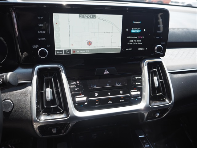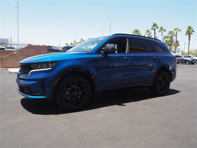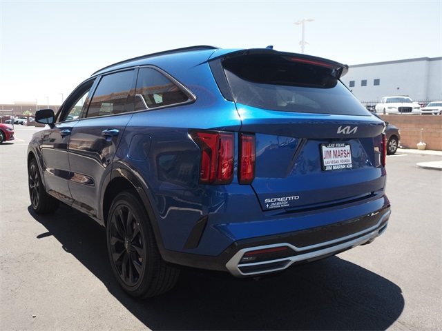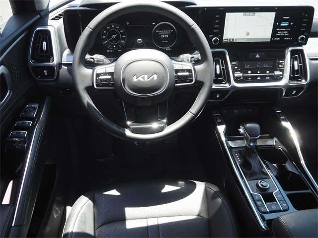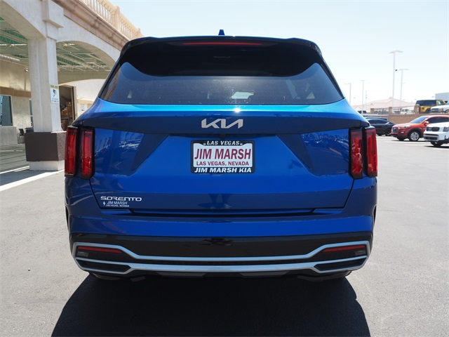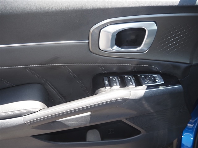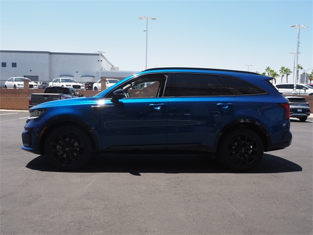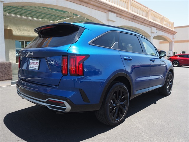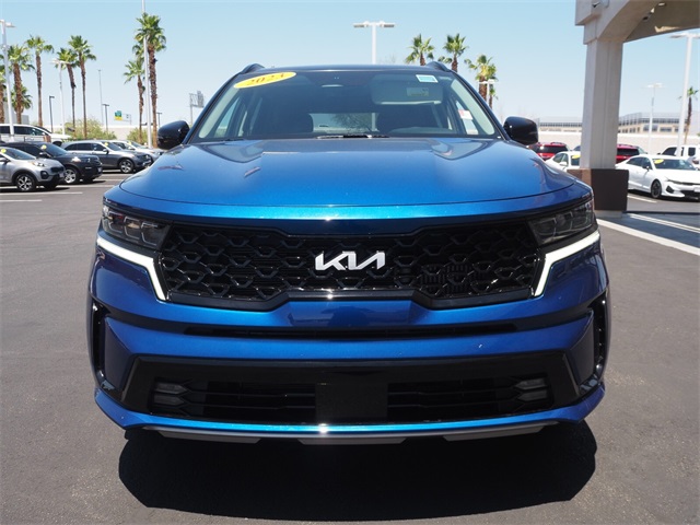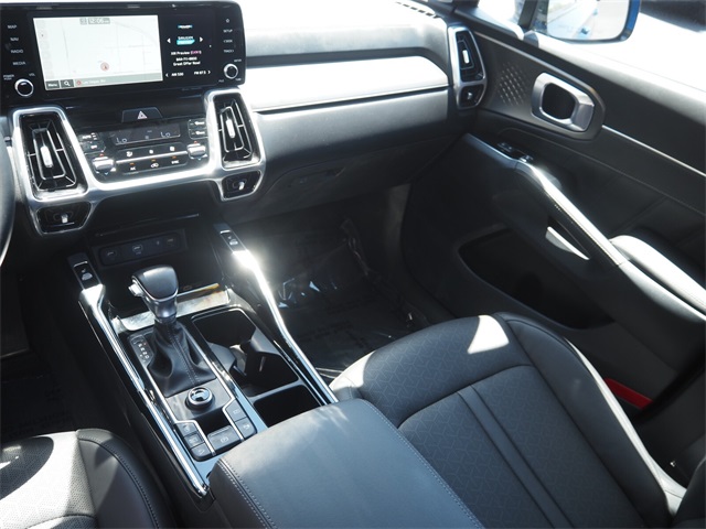 Recent Arrival!CARFAX One-Owner.22/29 City/Highway MPGSapphire Blue 2023 Kia Sorento SX FWD 8-Speed DCT 2.5L I4 DGI Turbocharged DOHC 16V LEV3-ULEV70 281hpIf you don't drive here, you can't save here!Price may not include recon fee. Kia Certified Pre-Owned Certified, 3.316 Axle Ratio, 3rd row seats: split-bench, 4-Wheel Disc Brakes, 6 Speakers, ABS brakes, Air Conditioning, Alloy wheels, AM/FM radio: SiriusXM, Apple CarPlay & Android Auto, Auto High-beam Headlights, Auto-dimming Rear-View mirror, Automatic temperature control, Brake assist, Bumpers: body-color, Carpet Floor Mats, Delay-off headlights, Driver door bin, Driver vanity mirror, Dual front impact airbags, Dual front side impact airbags, Electronic Stability Control, Emergency communication system, Exterior Parking Camera Rear, Four wheel independent suspension, Front anti-roll bar, Front Bucket Seats, Front Center Armrest, Front dual zone A/C, Front fog lights, Front reading lights, Fully automatic headlights, Heated door mirrors, Heated Front Bucket Seats, Heated front seats, Illuminated entry, Knee airbag, Leather steering wheel, Low tire pressure warning, Navigation System, Occupant sensing airbag, Outside temperature display, Overhead airbag, Overhead console, Panic alarm, Passenger door bin, Passenger vanity mirror, Power door mirrors, Power driver seat, Power Liftgate, Power moonroof, Power passenger seat, Power steering, Power windows, Radio data system, Radio: AM/FM Audio System, Rain sensing wipers, Rear air conditioning, Rear anti-roll bar, Rear reading lights, Rear window defroster, Rear window wiper, Remote keyless entry, Roof rack: rails only, Security system, Speed control, Speed-sensing steering, Split folding rear seat, Spoiler, Steering wheel mounted audio controls, SynTex Artificial Leather Seat Trim, Tachometer, Telescoping steering wheel, Tilt steering wheel, Traction control, Trip computer, Turn signal indicator mirrors, Variably intermittent wipers, and Wheels: 8.5J x 20" Gloss Black Alloy.