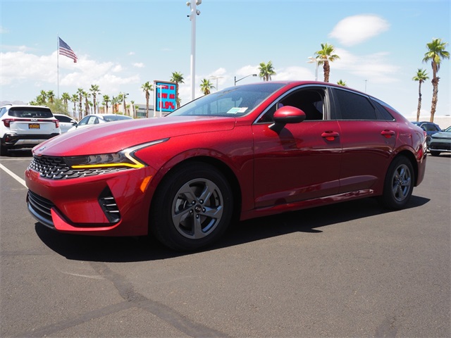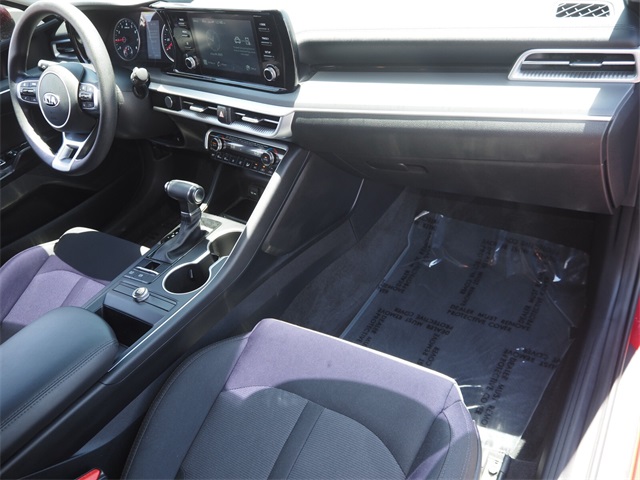 CARFAX One-Owner.Priced below KBB Fair Purchase Price!Odometer is 28520 miles below market average!27/37 City/Highway MPGPassion Red 2021 Kia K5 LXS FWD 8-Speed Automatic 1.6L I4 DGIIf you don't drive here, you can't save here!Awards: * JD Power Automotive Performance, Execution and Layout (APEAL) StudyPrice may not include recon fee. Kia Certified Pre-Owned Certified, 4-Wheel Disc Brakes, 6 Speakers, ABS brakes, Air Conditioning, Alloy wheels, AM/FM radio, Apple CarPlay & Android Auto, Auto High-beam Headlights, Automatic temperature control, Brake assist, Bumpers: body-color, Carpeted Floor Mats, Cloth Seat Trim, Delay-off headlights, Driver door bin, Driver vanity mirror, Dual front impact airbags, Dual front side impact airbags, Electronic Stability Control, Four wheel independent suspension, Front anti-roll bar, Front Bucket Seats, Front Center Armrest, Front dual zone A/C, Front reading lights, Fully automatic headlights, Heated door mirrors, Illuminated entry, Knee airbag, Low tire pressure warning, Occupant sensing airbag, Outside temperature display, Overhead airbag, Overhead console, Panic alarm, Passenger door bin, Passenger vanity mirror, Power door mirrors, Power steering, Power windows, Radio data system, Radio: AM/FM/MP3 Audio System, Rear anti-roll bar, Rear seat center armrest, Rear side impact airbag, Rear window defroster, Remote keyless entry, Security system, Speed control, Speed-sensing steering, Split folding rear seat, Steering wheel mounted audio controls, Tachometer, Telescoping steering wheel, Tilt steering wheel, Traction control, Trip computer, Variably intermittent wipers, and Wheels: 6.5J x 16" Machined Finish Alloy.