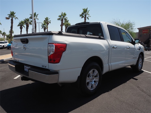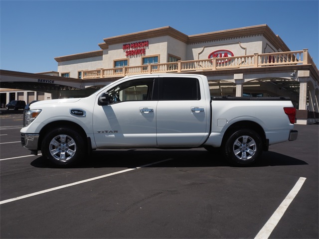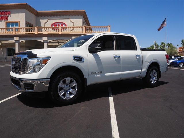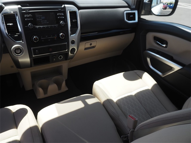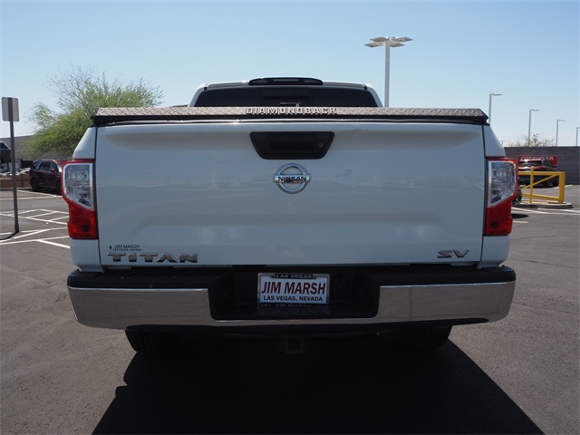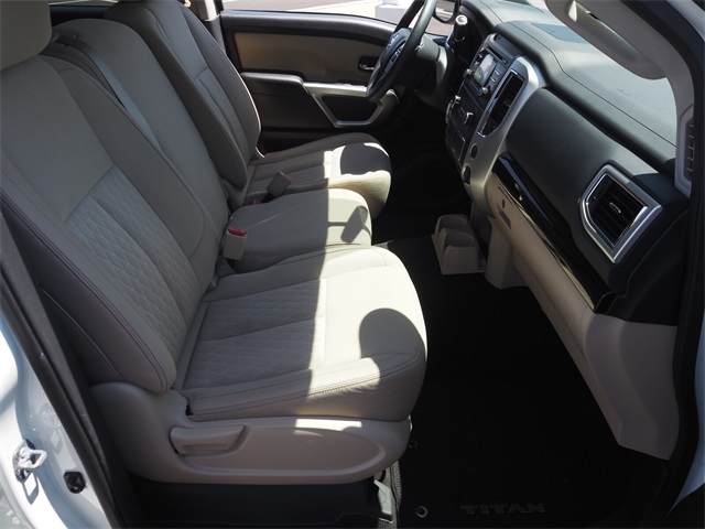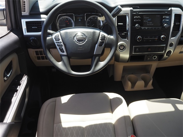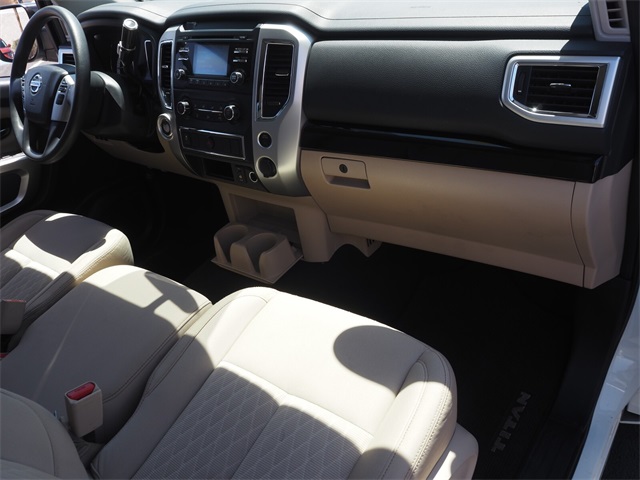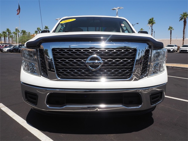 Odometer is 2899 miles below market average!Glacier White 2017 Nissan Titan SV RWD 7-Speed Automatic 5.6L V8If you don't drive here, you can't save here!Price may not include recon fee. 2.937 Axle Ratio, 4-Wheel Disc Brakes, 6 Speakers, ABS brakes, Activation Disclaimer, Air Conditioning, Alloy wheels, AM/FM radio: SiriusXM, Brake assist, Bumpers: chrome, Carpeted Floor Mats, CD player, Driver door bin, Driver vanity mirror, Dual front impact airbags, Dual front side impact airbags, Electronic Stability Control, Front anti-roll bar, Front Center Armrest w/Storage, Front Manual Split Bench Seat (40/20/40), Front reading lights, Front wheel independent suspension, Heated door mirrors, Illuminated entry, Low tire pressure warning, Occupant sensing airbag, Outside temperature display, Overhead airbag, Overhead console, Panic alarm, Passenger door bin, Passenger vanity mirror, Power door mirrors, Power steering, Power windows, Radio data system, Radio: NissanConnect w/SiriusXM & Mobile Apps, Rear anti-roll bar, Rear seat center armrest, Rear step bumper, Rear window defroster, Remote keyless entry, Security system, Speed control, Speed-sensing steering, Speed-Sensitive Wipers, Splash Guards, Split folding rear seat, Steering wheel mounted audio controls, Tachometer, Telescoping steering wheel, Tilt steering wheel, Traction control, Trip computer, Turn signal indicator mirrors, Variably intermittent wipers, Voltmeter, and Wheels: 18" x 8" Silver Painted Alloy.