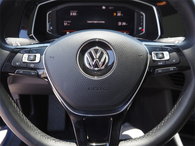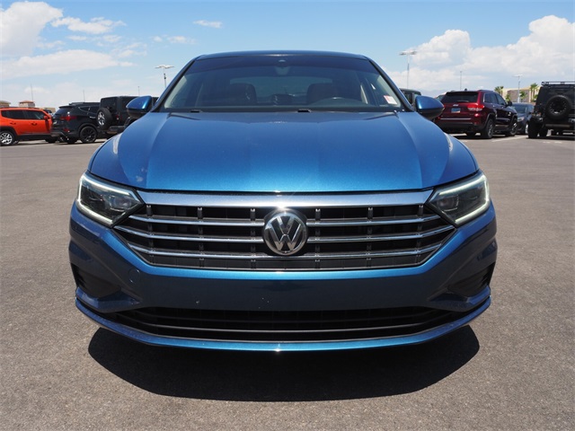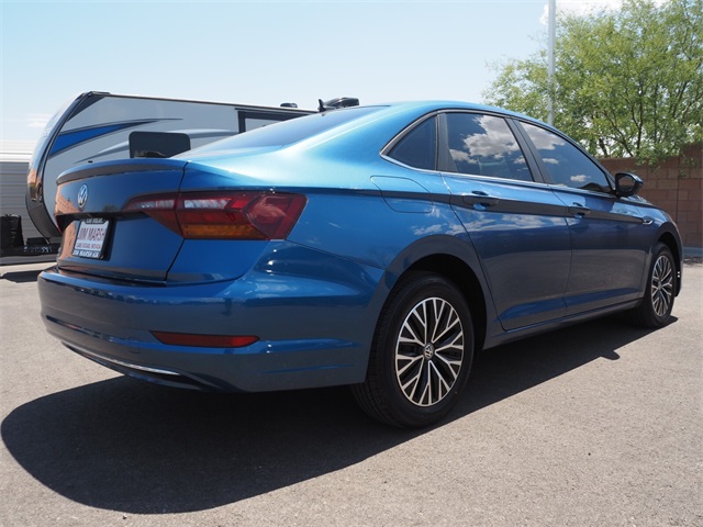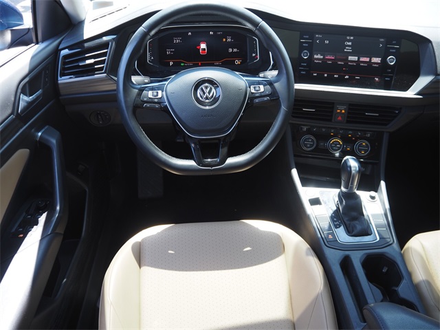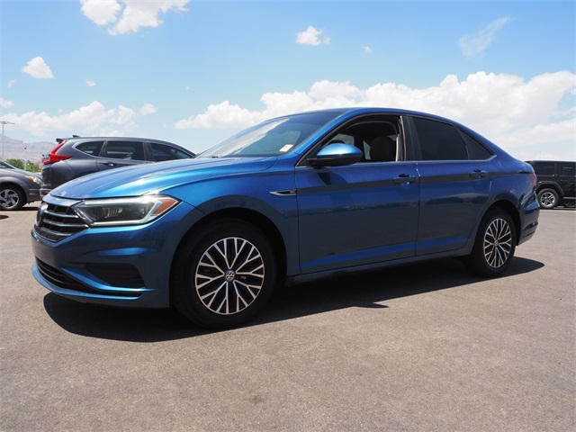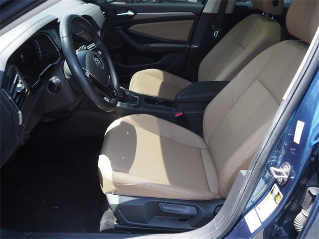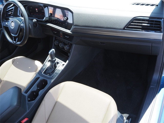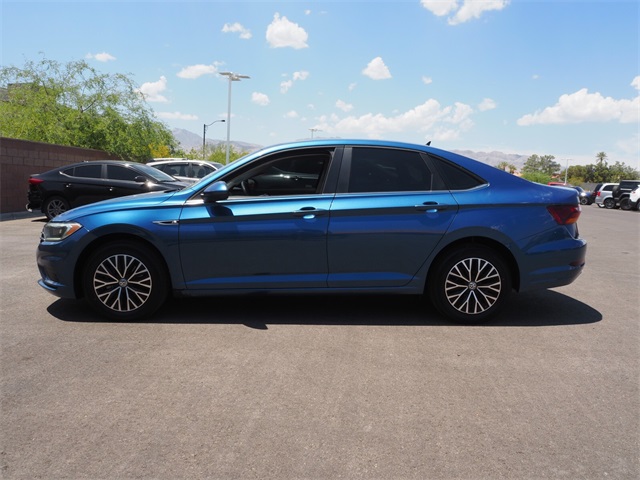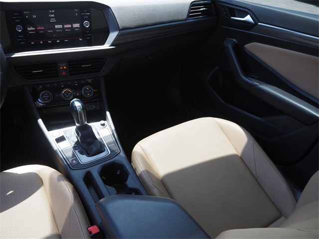 CARFAX One-Owner.Odometer is 8533 miles below market average!30/40 City/Highway MPGBlue 2019 Volkswagen Jetta SEL FWD 8-Speed Automatic with Tiptronic 1.4L TSIIf you don't drive here, you can't save here!Awards: * 2019 KBB.com 10 Best Sedans Under $30,000 * 2019 KBB.com 10 Coolest New Cars Under $20,000Price may not include recon fee. 4-Wheel Disc Brakes, 9 Speakers, ABS brakes, Air Conditioning, Alloy wheels, AM/FM radio: SiriusXM, Auto High-beam Headlights, Auto-dimming Rear-View mirror, Automatic temperature control, Brake assist, Bumpers: body-color, Delay-off headlights, Distance-Pacing Cruise Control, Driver door bin, Driver vanity mirror, Dual front impact airbags, Dual front side impact airbags, Electronic Stability Control, Emergency communication system: VW Car-Net services (capabilities require enrollment or subscription), Exterior Parking Camera Rear, Front anti-roll bar, Front Bucket Seats, Front Center Armrest, Front dual zone A/C, Front reading lights, Front wheel independent suspension, Fully automatic headlights, Heated door mirrors, Heated Front Comfort Seats, Heated front seats, Illuminated entry, Leather Shift Knob, Low tire pressure warning, Occupant sensing airbag, Outside temperature display, Overhead airbag, Overhead console, Panic alarm, Passenger door bin, Passenger vanity mirror, Perforated V-Tex Leatherette Seat Trim, Power door mirrors, Power moonroof, Power steering, Power windows, Radio data system, Radio: Composition Media w/8" Touchscreen, Rain sensing wipers, Rear anti-roll bar, Rear reading lights, Rear seat center armrest, Rear window defroster, Remote CD player, Remote keyless entry, Speed control, Speed-sensing steering, Split folding rear seat, Steering wheel mounted audio controls, Tachometer, Telescoping steering wheel, Tilt steering wheel, Traction control, Trip computer, Variably intermittent wipers, and Wheels: 16" Two-Tone Rama Black.