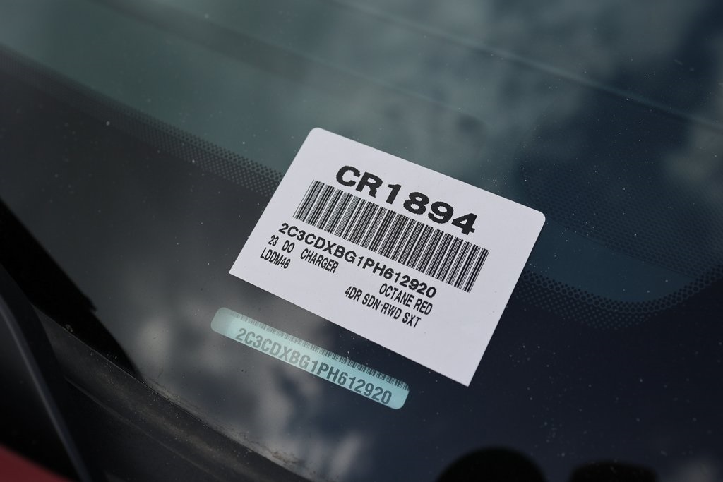 Octane Red Pearlcoat 2023 Dodge Charger SXT RWD 8-Speed Automatic 3.6L V6 24V VVT Black Leather.19/30 City/Highway MPG Price includes: $2000 - 2023 DODGE Retail Bonus Cash 23CPA1. Exp. 02/07/2024