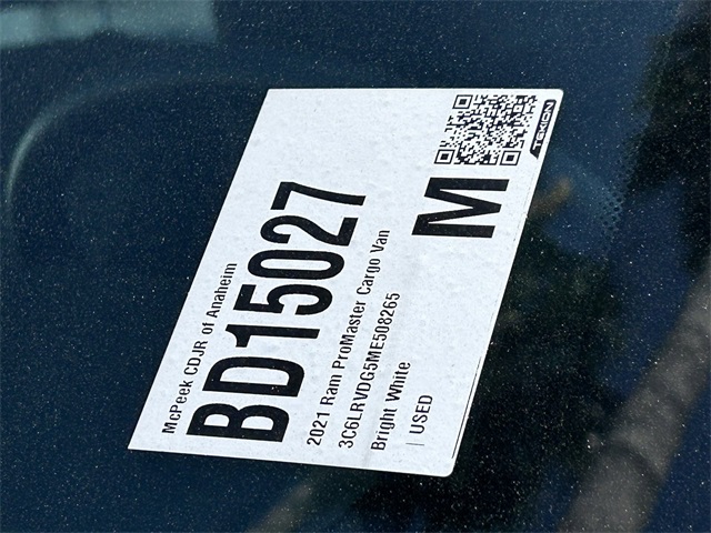Odometer is 23354 miles below market average! Clean CARFAX. CARFAX One-Owner. INTERIOR & EXTERIOR PROFESSIONALLY DETAILED FOR DELIVERY, MCPEEK CHRYSLER DODGE JEEP RAM FAMILY OWNED AND OPERATED SINCE 1961 !!!!!.Bright White Clearcoat 2021 Ram ProMaster 2500 High Roof FWD 6-Speed AutomaticReceive Free lube and oil filter changes for up to 45,000 miles for 3 years!!! McPeek's Dodge of Anahiem 1221 S. Auto Center Drive Anahiem, CA 92806 714-262-4902.