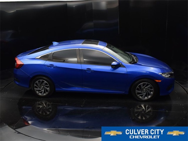 The 2017 Honda Civic EX is a compact car that offers a spacious interior, excellent fuel economy, and a variety of advanced safety features. It is powered by a 2.0-liter four-cylinder engine that produces 158 horsepower and 138 lb-ft of torque. The engine is paired with a continuously variable transmission (CVT), which provides smooth and efficient shifting.The EX trim level includes features such as a power sunroof, heated side mirrors, keyless entry and ignition, and automatic climate control. It also comes with a 7-inch touchscreen infotainment system that includes Apple CarPlay and Android Auto compatibility, as well as a rearview camera.In terms of safety, the 2017 Honda Civic EX comes standard with a suite of advanced safety features, including forward collision warning, automatic emergency braking, lane departure warning, and adaptive cruise control. It also received a five-star overall safety rating from the National Highway Traffic Safety Administration (NHTSA).Overall, the 2017 Honda Civic EX is a reliable and practical car that offers a good balance of performance, fuel efficiency, and safety features.At Culver City Chevrolet, our entire team works together to provide you with the ultimate Chevrolet shopping experience. We are family owned and operated, so we treat you just like you are part of our family. We are also very passionate about serving the community in which we work, live and play! From the Little League teams we support, to the next customer that walks in the door, we are committed to doing the right thing. Our goal is to exceed your expectations, deliver the best service possible, and make car shopping fun again. We offer a large inventory of Chevrolet cars, trucks, SUVs and electric vehicles, and an incredible lineup of luxury vehicles for sale as well! Just find the specific vehicle that fits your needs and schedule your test drive by calling 424-216-6027 today. We provide plenty of buying and leasing options for drivers in the Los Angeles area. WE LOOK FORWARD TO BEING THE NEW AND USED CHEVROLET VEHICLE SOURCE FOR YOU IN CULVER CITY!2017 Honda Civic EX Blue 2.0L I4 DOHC 16V i-VTEC 31/40 City/Highway MPG 31/40 City/Highway MPG KBB Fair Market Range Low: $20,192 Awards: * 2017 IIHS Top Safety Pick (When equipped with Honda Sensing) * 2017 KBB.com 10 Most Awarded Brands * 2017 KBB.com Brand Image AwardsKelley Blue Book Brand Image Awards are based on the Brand Watch(tm) study from Kelley Blue Book Market Intelligence. Award calculated among non-luxury shoppers. For more information, visit www.kbb.com. Kelley Blue Book is a registered trademark of Kelley Blue Book Co., Inc.Clean CARFAX. Odometer is 3719 miles below market average!4 doors, Alloy Wheels, Android Auto, Apple CarPlay/Android Auto, Automatic, Brake Assist, CarPlay, Cruise Control, Keyless Entry, Power Mirror Package, Security System, Stability Control, Cloth.
