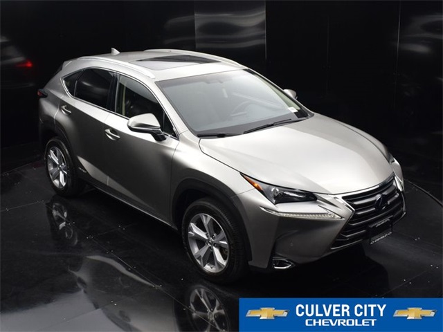The 2017 NX 300h features Lexus Hybrid Drive with a 2.5-liter Atkinson-cycle engine and class-leading 31-MPG combined rating,3 concealed exhaust tips, active damping control for superior ride comfort and handling response, and available Premium TripleBeam LED headlamps. All-wheel drive. Stunning from the most dramatic exterior line to the smallest interior detail, the NX makes a statement that can't be ignored. Outside, you'll find unique door-handle LEDs that offer a sophisticated invitation to the cabin. Inside, bolstered seating holds you tightly in place through every curve.At Culver City Chevrolet, our entire team works together to provide you with the ultimate Chevrolet shopping experience. We are family owned and operated, so we treat you just like you are part of our family. We are also very passionate about serving the community in which we work, live and play! From the Little League teams we support, to the next customer that walks in the door, we are committed to doing the right thing. Our goal is to exceed your expectations, deliver the best service possible, and make car shopping fun again. We offer a large inventory of Chevrolet cars, trucks, SUVs and electric vehicles, and an incredible lineup of luxury vehicles for sale as well! Just find the specific vehicle that fits your needs and schedule your test drive by calling 424-216-6027 today. We provide plenty of buying and leasing options for drivers in the Los Angeles area. WE LOOK FORWARD TO BEING THE NEW AND USED CHEVROLET VEHICLE SOURCE FOR YOU IN CULVER CITY!Priced below KBB Fair Purchase Price! 2017 Lexus NX 300h Gold 2.5L I4 DOHC 16V 33/30 City/Highway MPG 33/30 City/Highway MPG KBB Fair Market Range Low: $36,905 Awards: * 2017 IIHS Top Safety Pick+ * 2017 KBB.com 10 Best Luxury Cars Under $35,000 * 2017 KBB.com Brand Image AwardsClean CARFAX.30-39 MPG, Alloy Wheels, Automatic, AWD, Backup Camera, Blind Spot Monitor, Blind Spot Monitoring, Bluetooth, Brake Assist, Cooled Seats, Cross Traffic Alert, Cruise Control, Heat Package, Heated Seats, Heated Steering Wheel, Keyless Entry, Keyless Start, Memory Package, Memory Seat, Multi Zone Climate Control, Navigation System, Parking Sensors, Power Mirror Package, Premium Wheels, Rear Cross Traffic Alert, Roof Rack, Satellite Radio, Security System, Stability Control, Steering Wheel Controls, Sunroof/Moonroof, USB Port, 2.5L I4 DOHC 16V.