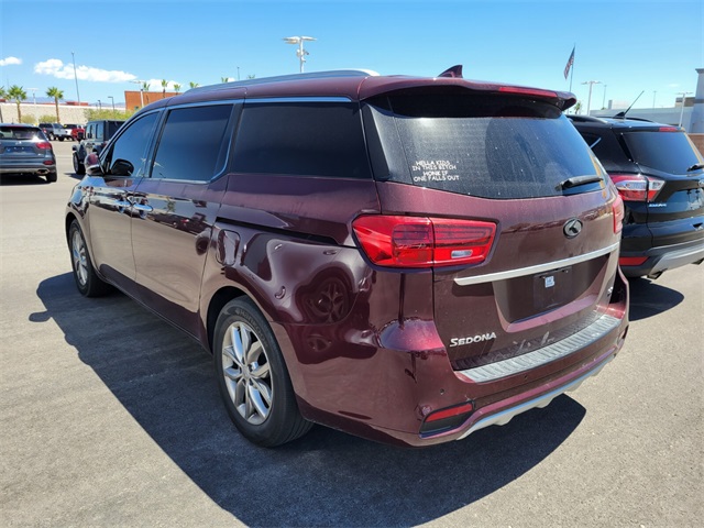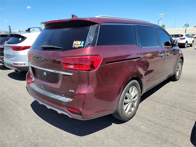 Recent Arrival!CARFAX One-Owner.Odometer is 5579 miles below market average!Venetian Red Pearl Metallic 2020 Kia Sedona EX FWD 8-Speed Automatic 3.3L V6 DGI 18" x 7.0J Alloy Wheels, ABS brakes, Alloy wheels, Bumpers: body-color, Compass, Electronic Stability Control, Emergency communication system, Front dual zone A/C, Heated Front Captain Seats, Heated front seats, Illuminated entry, Leather Seat Trim, Low tire pressure warning, Power door mirrors, Remote keyless entry, Roof rack: rails only, Spoiler, Traction control, Turn signal indicator mirrors.If you don't drive here, you can't save here!Price may not include recon fee. 18" x 7.0J Alloy Wheels, ABS brakes, Alloy wheels, Bumpers: body-color, Compass, Electronic Stability Control, Emergency communication system, Front dual zone A/C, Heated Front Captain Seats, Heated front seats, Illuminated entry, Leather Seat Trim, Low tire pressure warning, Power door mirrors, Remote keyless entry, Roof rack: rails only, Spoiler, Traction control, Turn signal indicator mirrors, 2-Way Power Driver Lumbar Support, 3.51 Axle Ratio, 3rd row seats: split-bench, 4-Way Adjustable Passenger's Seat, 4-Wheel Disc Brakes, 6 Speakers, 8-Way Power-Adjustable Driver's Seat, Air Conditioning, AM/FM radio: SiriusXM, Apple CarPlay & Android Auto, Automatic temperature control, Brake assist, Delay-off headlights, Driver door bin, Driver vanity mirror, Dual front impact airbags, Dual front side impact airbags, Exterior Parking Camera Rear, Four wheel independent suspension, Front anti-roll bar, Front Bucket Seats, Front Center Armrest, Front reading lights, Fully automatic headlights, Leather Shift Knob, Leather steering wheel, Occupant sensing airbag, Outside temperature display, Overhead airbag, Overhead console, Panic alarm, Passenger door bin, Passenger vanity mirror, Power driver seat, Power steering, Power windows, Radio: AM/FM/MP3 Audio System, Rear air conditioning, Rear anti-roll bar, Rear reading lights, Rear window defroster, Rear window wiper, Reclining 3rd row seat, Security system, Speed control, Speed-sensing steering, Split folding rear seat, Steering wheel mounted audio controls, Sun blinds, Tachometer, Telescoping steering wheel, Tilt steering wheel, Trip computer, and Variably intermittent wipers.