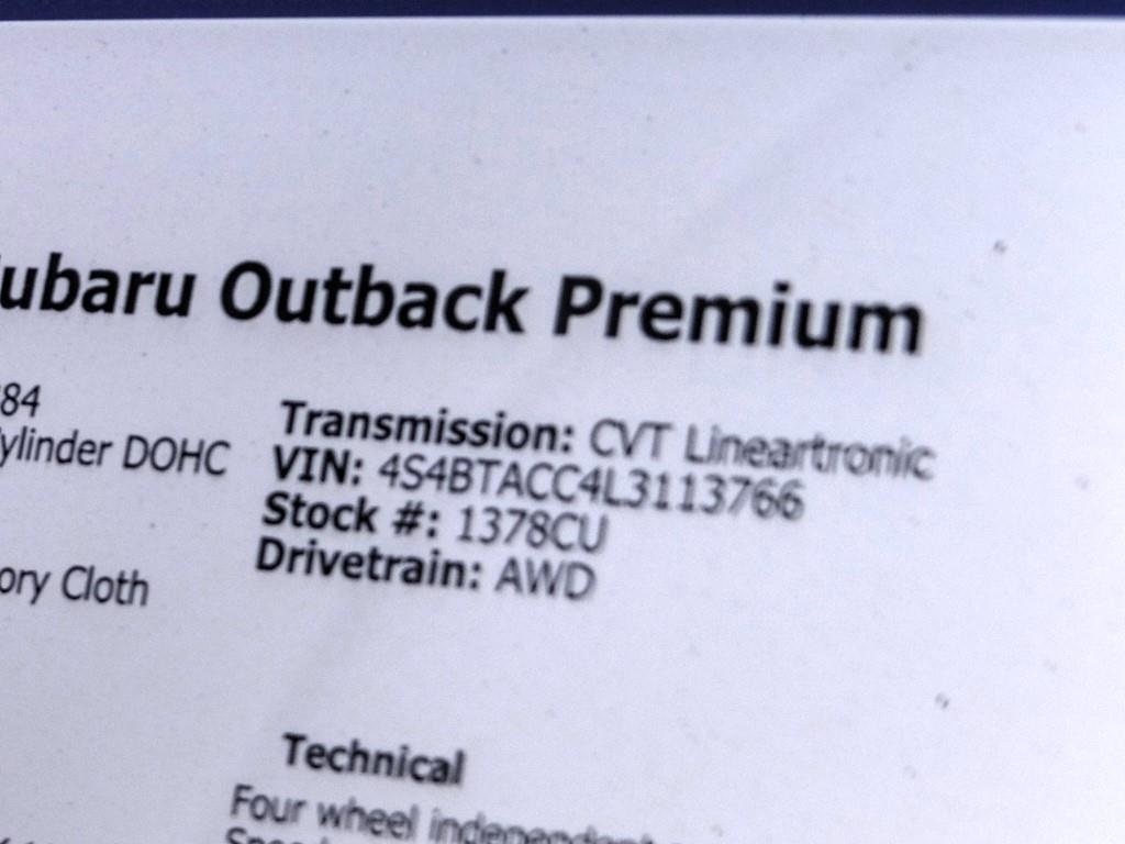 Priced below KBB Fair Purchase Price!LIFE TIME WARRANTY, Outback Premium, 4D Sport Utility, 2.5L 4-Cylinder DOHC 16V, CVT Lineartronic, AWD, Green, 6 Speakers, Active Cruise Control, Auto-Dimming Exterior Mirror w/Approach Light, Auto-Dimming Mirror w/Compass & HomeLink, Blind Spot Detection (BSD), Exterior Parking Camera Rear, Heated Front Bucket Seats, Popular Package #1, Power driver seat, Radio: Subaru STARLINK 11.6" Multimedia Plus Sys, Security system, Spoiler, Steering wheel mounted audio controls, Steering Wheel Paddle Shift Control Switches, Wheels: 17" x 7J Black Aluminum Alloy.Clean CARFAX.CARFAX One-Owner.Awards: * 2020 KBB.com 10 Favorite New-for-2020 Cars