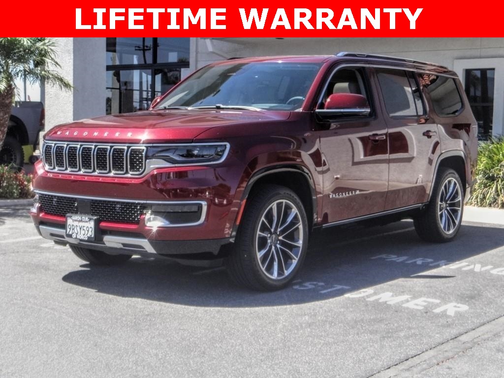 Priced below KBB Fair Purchase Price!LIFE TIME WARRANTY, Wagoneer Series III, 4D Sport Utility, 5.7L V8, 8-Speed Automatic, 4WD, Velvet Red Pearlcoat, Sea Salt/Black Leather, 19 Speaker McIntosh Audio System, 3 Panel Sunroof, 3.21 Rear Axle Ratio, 3rd row seats: bench, Active Cruise Control, Adaptive suspension, Adjustable pedals, Adjustable Roof Rail Crossbars, Amazon Fire TV Built-In, Auto-dimming door mirrors, Auto-dimming Rear-View mirror, Auto-leveling suspension, Compass, Exterior Parking Camera Rear, Garage door transmitter, Heads-Up Display, Heated front seats, Heated steering wheel, Leather Trimmed Bucket Seats, Memory seat, Navigation System, Pedal memory, Power Deployable Running Boards, Power driver seat, Power Liftgate, Premium Group I (DISC), Quick Order Package 22N, Rain sensing wipers, Rear Seat Video Group 1, Reclining 3rd row seat, Seatback Video Screens, Security system, Steering wheel mounted audio controls, Ventilated front seats, Video USB Port, Wheels: 20" x 9.0" Premium 2 Aluminum.Clean CARFAX.