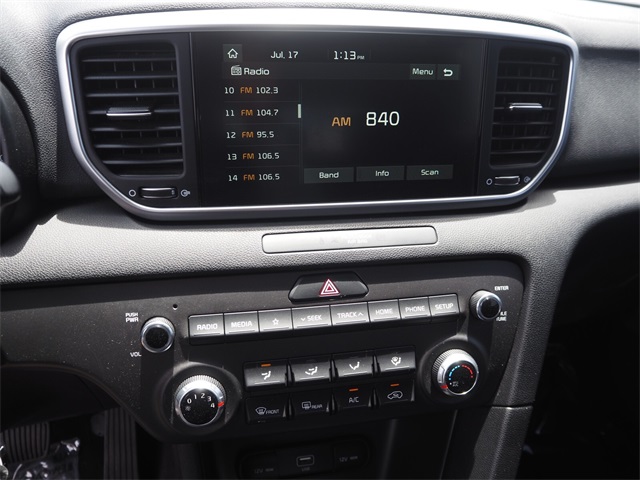 Recent Arrival!CARFAX One-Owner.Odometer is 26982 miles below market average!23/30 City/Highway MPGSparkling Silver 2020 Kia Sportage LX FWD 6-Speed Automatic Electronic with Overdrive 2.4L I4 DGI DOHC 16VIf you don't drive here, you can't save here!Price may not include recon fee. 17" Machine-Finished Alloy Wheels, 4-Wheel Disc Brakes, 6 Speakers, 6-Way Adjustable Driver's Seat, ABS brakes, Air Conditioning, Alloy wheels, AM/FM radio, Apple CarPlay & Android Auto, Auto High-beam Headlights, Axle Ratio: TBD, Brake assist, Bumpers: body-color, Cargo Net, Carpet Floor Mats, Cloth Seat Trim, Delay-off headlights, Driver door bin, Driver vanity mirror, Dual front impact airbags, Dual front side impact airbags, Electronic Stability Control, Exterior Parking Camera Rear, Four wheel independent suspension, Front anti-roll bar, Front Bucket Seats, Front Center Armrest, Front reading lights, Fully automatic headlights, Illuminated entry, Low tire pressure warning, Occupant sensing airbag, Outside temperature display, Overhead airbag, Overhead console, Panic alarm, Passenger door bin, Passenger vanity mirror, Power door mirrors, Power steering, Power windows, Radio: AM/FM/MP3, Rear anti-roll bar, Rear seat center armrest, Rear window defroster, Rear window wiper, Remote keyless entry, Security system, Speed control, Speed-sensing steering, Split folding rear seat, Spoiler, Steering wheel mounted audio controls, Tachometer, Telescoping steering wheel, Tilt steering wheel, Traction control, Trip computer, and Variably intermittent wipers.
