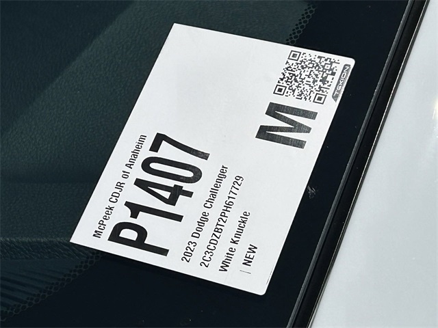 White Knuckle Clearcoat 2023 Dodge Challenger R/T RWD 8-Speed Automatic HEMI 5.7L V8 Multi Displacement VVT INTERIOR & EXTERIOR PROFESSIONALLY DETAILED FOR DELIVERY, MCPEEK CHRYSLER DODGE JEEP RAM FAMILY OWNED AND OPERATED SINCE 1961 !!!!!.All prices are subject to change without notice. All vehicles subject to prior sale. Advertised price does not include Dealer Installed Accessories or Commercial Bed/Body Upfits. Please contact dealer to receive the most up to date pricing information and complete details.Receive Free lube and oil filter changes for up to 45,000 miles for 3 years!!! McPeek's Dodge of Anahiem 1221 S. Auto Center Drive Anahiem, CA 92806 714-262-4902. Price includes: $1000 - 2023 Chrysler Capital Bonus Cash. Exp. 07/01/2024 $2000 - 2023 California BC Bonus Cash. Exp. 07/01/2024 $3750 - 2023 National Power Dollars Retail Bonus Cash. Exp. 07/01/2024