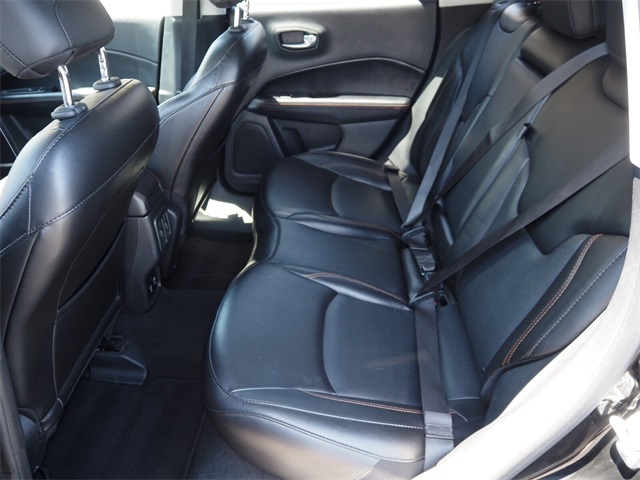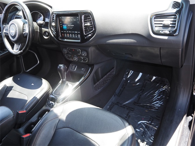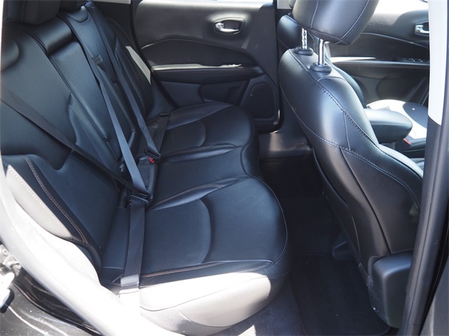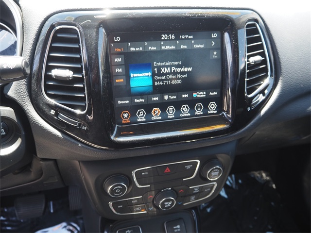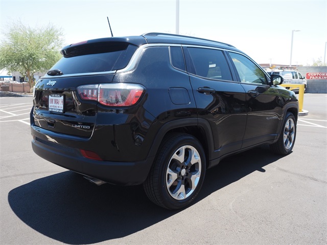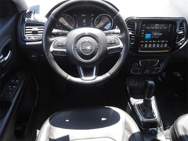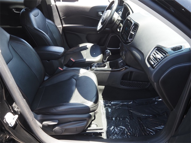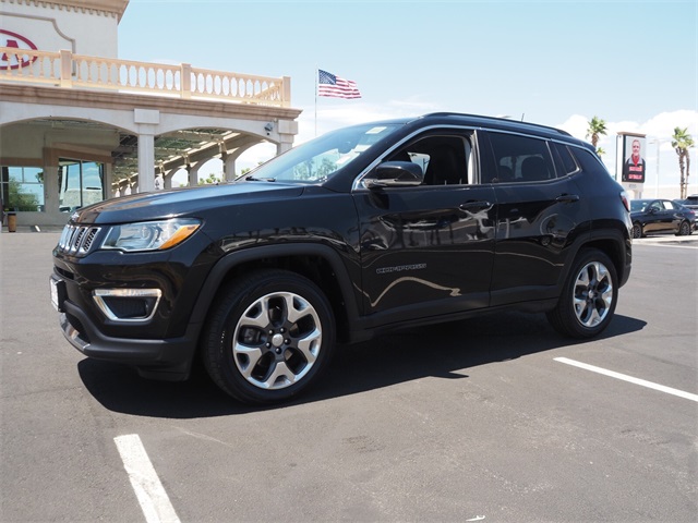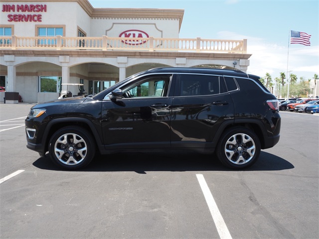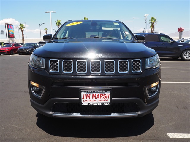 22/31 City/Highway MPGDiamond Black Crystal Pearlcoat 2020 Jeep Compass Limited FWD 6-Speed Aisin Automatic 2.4L I4If you don't drive here, you can't save here!Price may not include recon fee. Quick Order Package 28G, 2nd Row USB Type A, 3.502 Axle Ratio, 4-Wheel Disc Brakes, 6 Speakers, 8.4" Touch Screen Display, ABS brakes, Air Conditioning, Alloy wheels, AM/FM radio: SiriusXM, Anti-whiplash front head restraints, Apple CarPlay, Apple CarPlay/Android Auto, Auto-dimming Rear-View mirror, Automatic temperature control, Bluetooth® Streaming Audio, Brake assist, Bumpers: body-color, Compass, Delay-off headlights, Driver door bin, Driver vanity mirror, Dual front impact airbags, Dual front side impact airbags, Electronic Stability Control, Four wheel independent suspension, Front anti-roll bar, Front Bucket Seats, Front Center Armrest w/Storage, Front dual zone A/C, Front fog lights, Front License Plate Bracket, Front reading lights, Fully automatic headlights, Google Android Auto, GPS Antenna Input, Heated door mirrors, Heated front seats, Heated steering wheel, Illuminated entry, Knee airbag, Leather Shift Knob, Leather Trimmed Bucket Seats, Low tire pressure warning, Manufacturer's Statement of Origin (DISC), Media Hub (USB, AUX), Occupant sensing airbag, Outside temperature display, Overhead airbag, Overhead console, Panic alarm, ParkView Rear Back-Up Camera, Passenger door bin, Passenger vanity mirror, Power door mirrors, Power driver seat, Power steering, Power windows, Radio: Uconnect 4 w/8.4" Display, Rear anti-roll bar, Rear seat center armrest, Rear window defroster, Rear window wiper, Remote keyless entry, Roof rack: rails only, Security system, Speed control, Split folding rear seat, Spoiler, Steering wheel mounted audio controls, Tachometer, Telescoping steering wheel, Tilt steering wheel, Traction control, Trip computer, Turn signal indicator mirrors, USB Host Flip, Variably intermittent wipers, and Wheels: 18" x 7.0" Polished/Gray Pockets Aluminum.