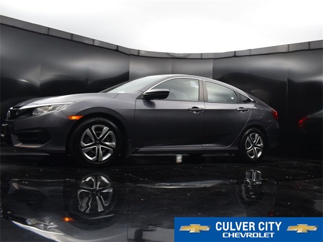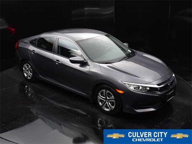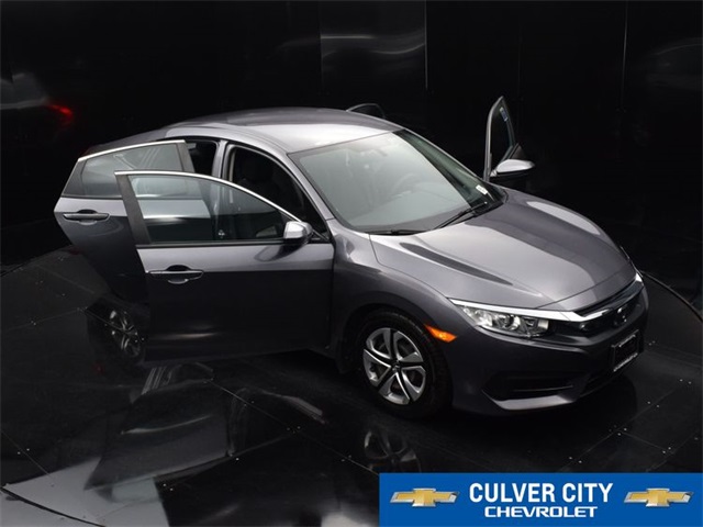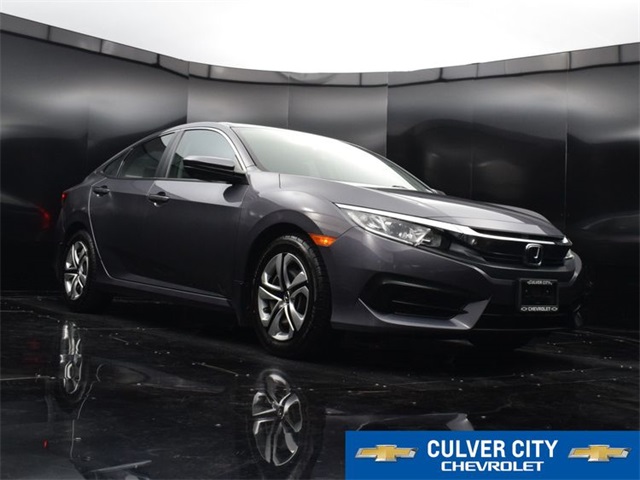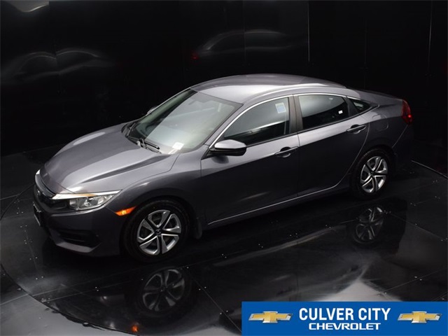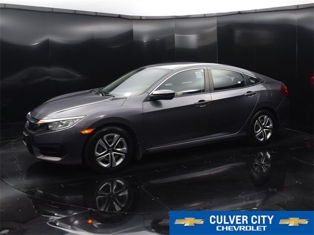 The 2016 Honda Civic LX is a reliable and efficient compact sedan that excels in delivering a balanced combination of performance, comfort, and practicality. Boasting Honda's renowned engineering, the Civic LX comes equipped with a fuel-efficient 2.0-liter four-cylinder engine, delivering a smooth and responsive driving experience. Its sleek and stylish exterior design exudes a modern appeal while providing ample space for passengers and cargo inside the well-crafted cabin. Packed with a host of standard features, including a user-friendly infotainment system, safety assists, and comfortable seating, the 2016 Honda Civic LX proves to be an excellent choice for daily commuting and weekend adventures, appealing to those seeking a dependable and enjoyable driving companion.At Culver City Chevrolet, our entire team works together to provide you with the ultimate Chevrolet shopping experience. We are family owned and operated, so we treat you just like you are part of our family. We are also very passionate about serving the community in which we work, live and play! From the Little League teams we support, to the next customer that walks in the door, we are committed to doing the right thing. Our goal is to exceed your expectations, deliver the best service possible, and make car shopping fun again. We offer a large inventory of Chevrolet cars, trucks, SUVs and electric vehicles, and an incredible lineup of luxury vehicles for sale as well! Just find the specific vehicle that fits your needs and schedule your test drive by calling 424-216-6027 today. We provide plenty of buying and leasing options for drivers in the Los Angeles area. WE LOOK FORWARD TO BEING THE NEW AND USED CHEVROLET VEHICLE SOURCE FOR YOU IN CULVER CITY!Priced below KBB Fair Purchase Price! 2016 Honda Civic LX Lunar Silver Metallic 2.0L I4 DOHC 16V i-VTEC 31/41 City/Highway MPG 31/41 City/Highway MPG KBB Fair Market Range Low: $19,684 Awards: * 2016 IIHS Top Safety Pick+ (When equipped with honda sensing) * NACTOY 2016 North American Car of the Year * 2016 KBB.com Brand Image AwardsKelley Blue Book Brand Image Awards are based on the Brand Watch(tm) study from Kelley Blue Book Market Intelligence. Award calculated among non-luxury shoppers. For more information, visit www.kbb.com. Kelley Blue Book is a registered trademark of Kelley Blue Book Co., Inc.Clean CARFAX. Odometer is 51552 miles below market average!GPS Tracking System-S.W.A.T. $1995, 4 doors, 30-39 MPG, Alloy Wheels, Automatic, Brake Assist, Cruise Control, Power Mirror Package, Security System, Stability Control, Steering Wheel Controls, USB Port, Black Cloth.