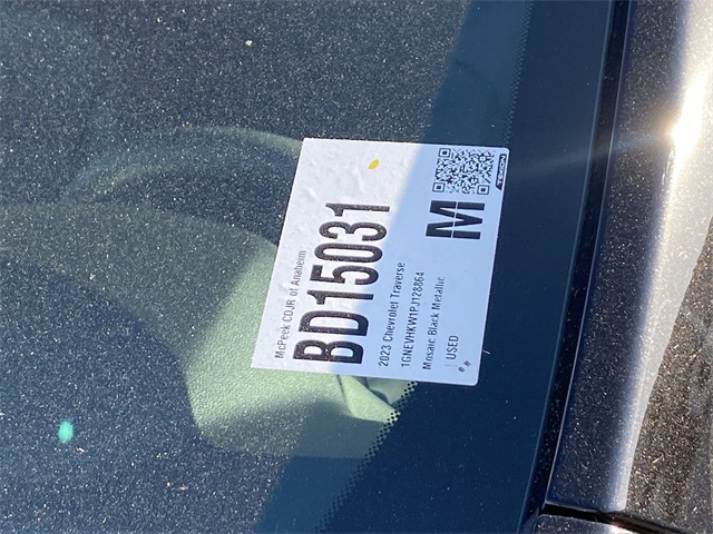 Clean CARFAX. CARFAX One-Owner. BACK-UP CAMERA, 4X4, GREAT VALUE, INTERIOR & EXTERIOR PROFESSIONALLY DETAILED FOR DELIVERY, MCPEEK CHRYSLER DODGE JEEP RAM FAMILY OWNED AND OPERATED SINCE 1961 !!!!!, ONE OWNER, AWD, Heated Driver & Front Passenger Seats, Preferred Equipment Group 3LT.Mosaic Black Metallic 2023 Chevrolet Traverse LT Leather AWD 9-Speed AutomaticReceive Free lube and oil filter changes for up to 45,000 miles for 3 years!!! McPeek's Dodge of Anahiem 1221 S. Auto Center Drive Anahiem, CA 92806 714-262-4902.