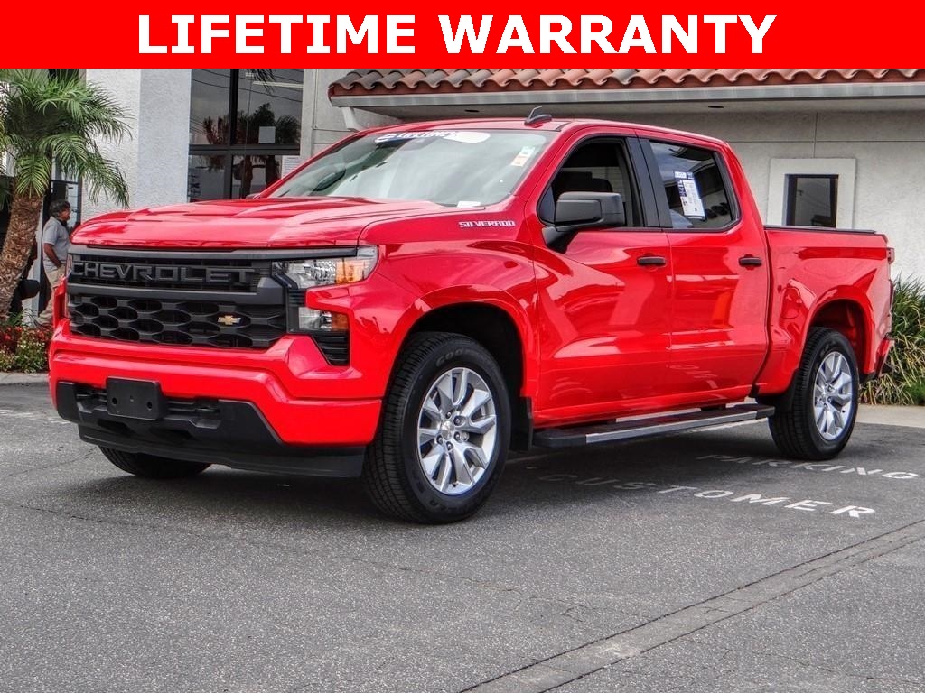 Priced below KBB Fair Purchase Price!LIFE TIME WARRANTY, Silverado 1500 Custom, 4D Crew Cab, 2.7L Turbo, 8-Speed Automatic, RWD, Red Hot, Jet Black Cloth, 10-Way Power Driver Seat w/Lumbar, 6-Speaker Audio System, Apple CarPlay/Android Auto, Automatic Emergency Braking, Compass, Custom Convenience Package, Custom Value Package, EZ Lift Power Lock & Release Tailgate, High Capacity Suspension Package, Hitch Guidance, Power driver seat, Power Front Windows w/Driver Express Up/Down, Power Front Windows w/Passenger Express Down, Power Rear Windows w/Express Down, Premium audio system: Chevrolet Infotainment 3, Remote Vehicle Starter System, Security system, Theft Deterrent System (Unauthorized Entry), Trailering Package, Wheels: 20" x 9" Bright Silver Painted Aluminum, Wireless Phone Projection.Clean CARFAX.CARFAX One-Owner.