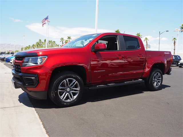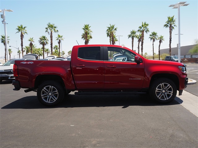 CARFAX One-Owner.Priced below KBB Fair Purchase Price!Odometer is 25234 miles below market average!Cherry Red Tintcoat 2021 Chevrolet Colorado Work Truck 4WD 8-Speed Automatic V6 4WD.If you don't drive here, you can't save here!Price may not include recon fee. Custom Special Edition (Body-Color Door Handles, Outside Power-Adjustable Body-Color Mirrors, Rear Body-Color Bumper, Spotter Mirror, and Wheels: 18" x 8.5" Dark Argent Metallic Cast Alloy), Preferred Equipment Group 4WT, WT Convenience Package (Electronic Automatic Cruise Control, Extended Range Remote Keyless Entry, EZ-Lift & Lower Tailgate, Remote Locking Tailgate, and Unauthorized Entry Theft-Deterrent System), 4WD, 3.42 Rear Axle Ratio, 4-Wheel Disc Brakes, 6 Speakers, 6-Speaker Audio System Feature, ABS brakes, Air Conditioning, AM/FM radio: SiriusXM, Apple CarPlay/Android Auto, Bumpers: body-color, Delay-off headlights, Driver 4-Way Power Seat Adjuster, Driver door bin, Dual front impact airbags, Dual front side impact airbags, Electronic Stability Control, Exterior Parking Camera Rear, Front anti-roll bar, Front Bucket Seats, Front Center Armrest, Front License Plate Kit, Front wheel independent suspension, Fully automatic headlights, Low tire pressure warning, Occupant sensing airbag, Overhead airbag, Passenger door bin, Passenger vanity mirror, Power driver seat, Power steering, Power windows, Premium audio system: Chevrolet Infotainment 3, Radio data system, Radio: Chevrolet Infotainment 3 System, Rear seat center armrest, Rear step bumper, SiriusXM Radio, Speed-sensing steering, Tachometer, Tilt steering wheel, Traction control, Trip computer, Variably intermittent wipers, Vinyl Seat Trim, and Wheels: 17" x 8" Ultra Silver Metallic Steel.