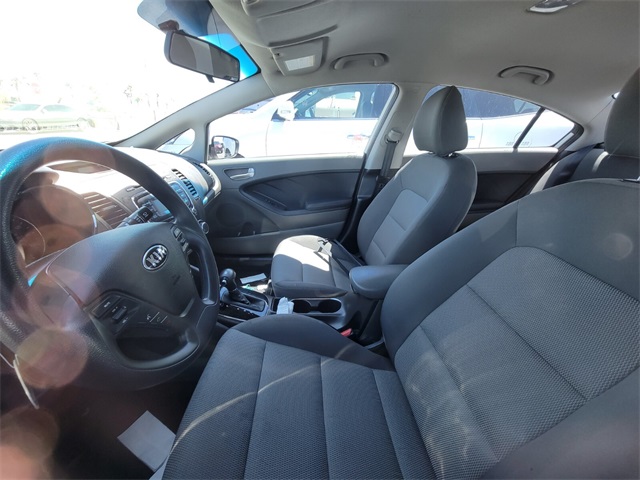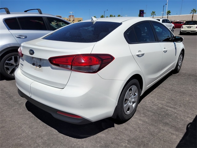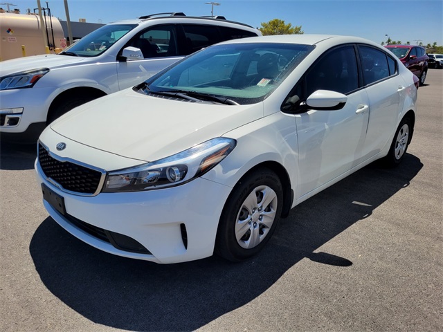 Recent Arrival!Odometer is 25514 miles below market average!29/38 City/Highway MPGClear White 2017 Kia Forte LX FWD 6-Speed Automatic 2.0L I4 DOHC Dual CVVTIf you don't drive here, you can't save here!Awards: * 2017 KBB.com 10 Most Awarded BrandsPrice may not include recon fee. 4 Speakers, 4-Wheel Disc Brakes, ABS brakes, Air Conditioning, AM/FM radio: SiriusXM, AM/FM/CD/MP3 Audio System, Brake assist, Bumpers: body-color, Cargo Mat, Cargo Net, Carpeted Floor Mats, CD player, Cloth Seat Trim, Delay-off headlights, Driver door bin, Driver vanity mirror, Dual front impact airbags, Dual front side impact airbags, Electronic Stability Control, Front anti-roll bar, Front Bucket Seats, Front Center Armrest, Front wheel independent suspension, Heated door mirrors, Illuminated entry, Low tire pressure warning, MP3 decoder, Mudguards, Occupant sensing airbag, Outside temperature display, Overhead airbag, Panic alarm, Passenger door bin, Passenger vanity mirror, Power door mirrors, Power steering, Power windows, Rear window defroster, Remote keyless entry, Security system, Split folding rear seat, Steering wheel mounted audio controls, Tachometer, Telescoping steering wheel, Tilt steering wheel, Traction control, Trip computer, Variably intermittent wipers, and Wheels: 15" x 6.0" Steel w/Wheel Covers.