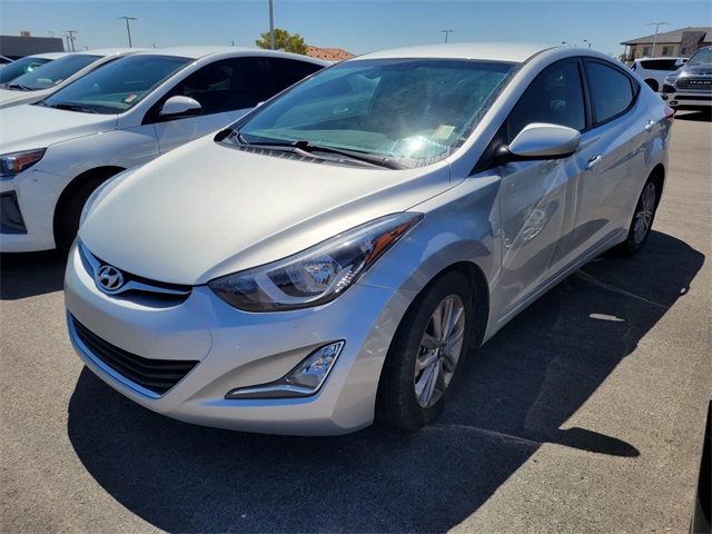 Recent Arrival!CARFAX One-Owner.Odometer is 47293 miles below market average!28/38 City/Highway MPGSymphony Silver 2016 Hyundai Elantra SE FWD 6-Speed Automatic with Shiftronic 1.8L 4-Cylinder DOHC 16V Dual CVVTIf you don't drive here, you can't save here!Awards: * 2016 KBB.com 10 Best Used Compact Cars Under $15,000 * 2016 KBB.com Best Buy Awards Finalist * 2016 KBB.com 5-Year Cost to Own AwardsPrice may not include recon fee. Popular Equipment Package (16" Alloy Wheels, 4.3" Touchscreen Color Audio Display, Automatic Headlamp Control, Driver Blind Spot Mirror, Driver's One-Touch Auto Up Window, Dual Outside Power Mirrors, Fog Lights, Illuminated Ignition, Sliding Center Armrest, Solar Glass w/Windshield Shade Band, and Steering Wheel Audio Controls), 15" Steel Wheels w/Covers, 4-Wheel Disc Brakes, 6 Speakers, ABS brakes, Air Conditioning, AM/FM radio: SiriusXM, Auto-Dimming Mirror w/HomeLink, Brake assist, Bumpers: body-color, Carpeted Floor Mats, CD player, Delay-off headlights, Driver door bin, Driver vanity mirror, Dual front impact airbags, Dual front side impact airbags, Electronic Stability Control, Front anti-roll bar, Front Bucket Seats, Front Center Armrest w/Storage, Front reading lights, Front wheel independent suspension, Illuminated entry, Low tire pressure warning, MP3 decoder, Occupant sensing airbag, Option Group 02, Outside temperature display, Overhead airbag, Overhead console, Panic alarm, Passenger door bin, Passenger vanity mirror, Power door mirrors, Power steering, Power windows, Premium Cloth Seat Trim, Radio: AM/FM/SiriusXM/CD/MP3 Audio System, Rear anti-roll bar, Rear seat center armrest, Rear window defroster, Remote keyless entry, Security system, Speed control, Speed-sensing steering, Split folding rear seat, Tachometer, Tilt steering wheel, Traction control, Trip computer, and Variably intermittent wipers.