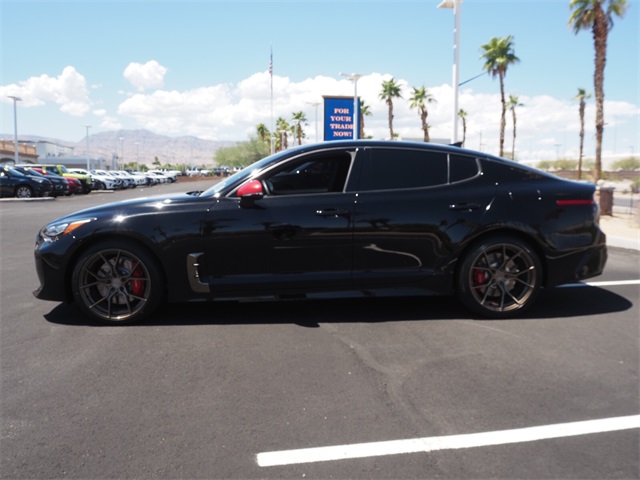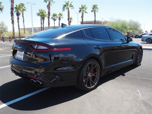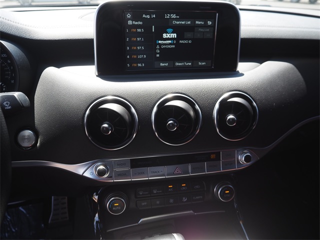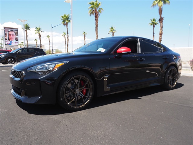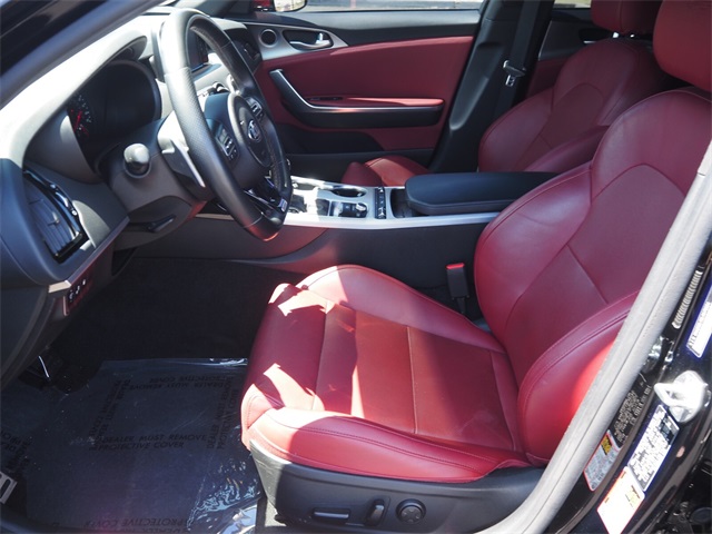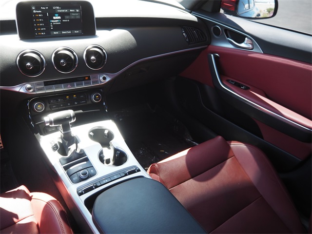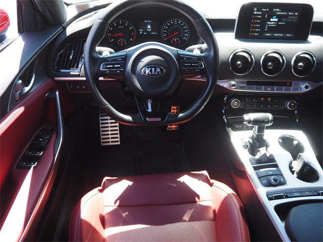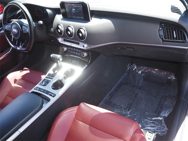CARFAX One-Owner.Aurora Black 2020 Kia Stinger GT RWD 8-Speed Automatic V6If you don't drive here, you can't save here!Awards: * JD Power Automotive Performance, Execution and Layout (APEAL) StudyPrice may not include recon fee. Red Interior Color Package (Red Leather Seat Trim), Kia Certified Pre-Owned Certified, 4-Wheel Disc Brakes, 9 Speakers, ABS brakes, Air Conditioning, Alloy wheels, AM/FM radio: SiriusXM, Anti-whiplash front head restraints, Apple CarPlay & Android Auto, Auto-dimming Rear-View mirror, Automatic temperature control, Brake assist, Bumpers: body-color, Carpeted Floor Mat, Delay-off headlights, Driver door bin, Driver vanity mirror, Dual front impact airbags, Dual front side impact airbags, Electronic Stability Control, Emergency communication system: UVO eServices, Exterior Parking Camera Rear, Four wheel independent suspension, Front anti-roll bar, Front Bucket Seats, Front Center Armrest, Front dual zone A/C, Front reading lights, Fully automatic headlights, Heated door mirrors, Heated Front Bucket Seats, Heated front seats, Illuminated entry, Knee airbag, Leather Seat Trim, Low tire pressure warning, Occupant sensing airbag, Outside temperature display, Overhead airbag, Overhead console, Panic alarm, Passenger door bin, Passenger vanity mirror, Power door mirrors, Power driver seat, Power passenger seat, Power steering, Power windows, Radio: AM/FM/MP3/HD/SiriusXM Audio System, Rear air conditioning, Rear anti-roll bar, Rear Bumper Applique, Rear reading lights, Rear seat center armrest, Rear window defroster, Remote keyless entry, Security system, Speed control, Speed-sensing steering, Speed-Sensitive Wipers, Split folding rear seat, Spoiler, Sport steering wheel, Steering wheel mounted audio controls, Tachometer, Telescoping steering wheel, Tilt steering wheel, Traction control, Trip computer, Turn signal indicator mirrors, Variably intermittent wipers, and Wheels: 19" x 8.0 Front & 19" x 8.5 Rear Alloy.