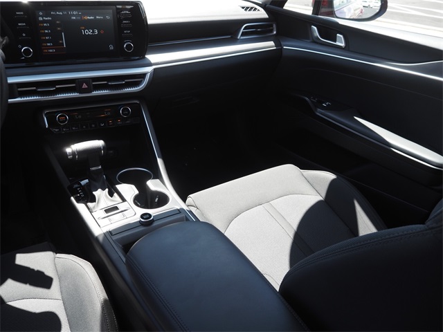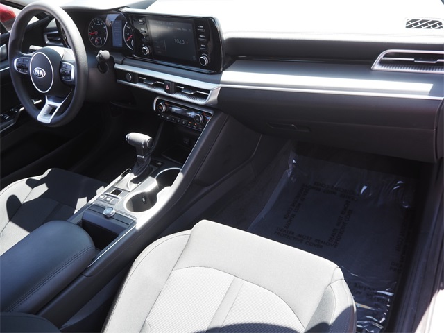 CARFAX One-Owner.Priced below KBB Fair Purchase Price!Odometer is 42530 miles below market average!27/37 City/Highway MPGPassion Red 2021 Kia K5 LXS FWD 8-Speed Automatic 1.6L I4 DGIIf you don't drive here, you can't save here!Awards: * JD Power Automotive Performance, Execution and Layout (APEAL) StudyPrice may not include recon fee. Kia Certified Pre-Owned Certified, 4-Wheel Disc Brakes, 6 Speakers, ABS brakes, Air Conditioning, Alloy wheels, AM/FM radio, Apple CarPlay & Android Auto, Auto High-beam Headlights, Automatic temperature control, Brake assist, Bumpers: body-color, Carpeted Floor Mats, Cloth Seat Trim, Delay-off headlights, Driver door bin, Driver vanity mirror, Dual front impact airbags, Dual front side impact airbags, Electronic Stability Control, Four wheel independent suspension, Front anti-roll bar, Front Bucket Seats, Front Center Armrest, Front dual zone A/C, Front reading lights, Fully automatic headlights, Heated door mirrors, Illuminated entry, Knee airbag, Low tire pressure warning, Occupant sensing airbag, Outside temperature display, Overhead airbag, Overhead console, Panic alarm, Passenger door bin, Passenger vanity mirror, Power door mirrors, Power steering, Power windows, Radio data system, Radio: AM/FM/MP3 Audio System, Rear anti-roll bar, Rear seat center armrest, Rear side impact airbag, Rear window defroster, Remote keyless entry, Security system, Speed control, Speed-sensing steering, Split folding rear seat, Steering wheel mounted audio controls, Tachometer, Telescoping steering wheel, Tilt steering wheel, Traction control, Trip computer, Variably intermittent wipers, and Wheels: 6.5J x 16" Machined Finish Alloy.