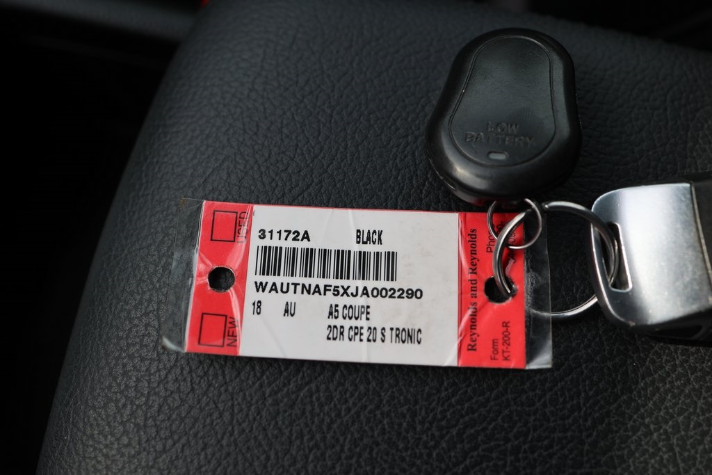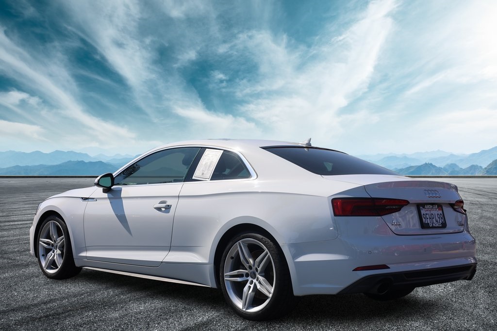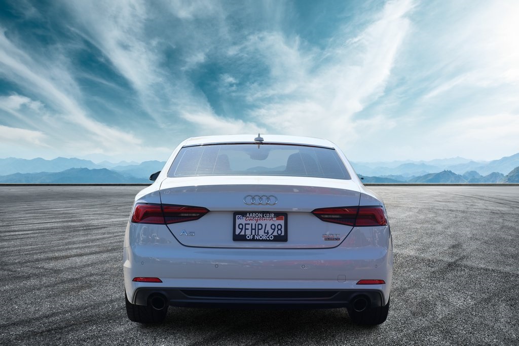 Priced below KBB Fair Purchase Price!A5 2.0T Premium Plus, 2D Coupe, 2.0L 4-Cylinder TFSI, 7-Speed Automatic S tronic, quattro, White, Black w/Leather Seating Surfaces, 10 Speakers, 12.3" LCD Display Audi Virtual Cockpit, 19" S line Wheel Package, Alarm System w/Motion Sensors, Alloy wheels, Audi Advanced Key, Audi MMI Navigation Plus w/MMI Touch, Audi Side Assist, Auto-dimming Rear-View mirror, Bang & Olufsen Sound System w/3D Sound, Compass, Convenience Package, Driver Seat Memory, Electronic Stability Control, Exterior Parking Camera Rear, Front Bucket Seats, Front Center Armrest, Front dual zone A/C, Front Sport Seats, Full LED Headlights, Heated Auto-Dimming Power Ext Mirrors w/Memory, Heated Auto-Dimming Power/Memory Exterior Mirrors, Heated door mirrors, Heated Front Seats, High intensity discharge headlights: Xenon plus, Illuminated entry, Low tire pressure warning, Navigation Package, Navigation System, Parking System Plus (Front/Rear Acoustic Sensors), Power moonroof, Power passenger seat, Premium Plus, Rain sensing wipers, Rear Audi Pre Sense, Remote keyless entry, S Line Bumpers, S Line Fender Badges, S line Side Sill Blades, S line Sport Package, Split folding rear seat, Sport Suspension, Traction control, Turn signal indicator mirrors, Wheels: 18" x 8.5" 5-Arm-Star Design, Wheels: 19" x 8.5" 5-Parallel-Spoke Design.Clean CARFAX.CARFAX One-Owner.Awards: * 2018 KBB.com 10 Most Awarded Brands