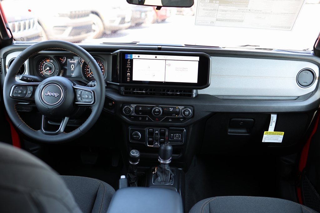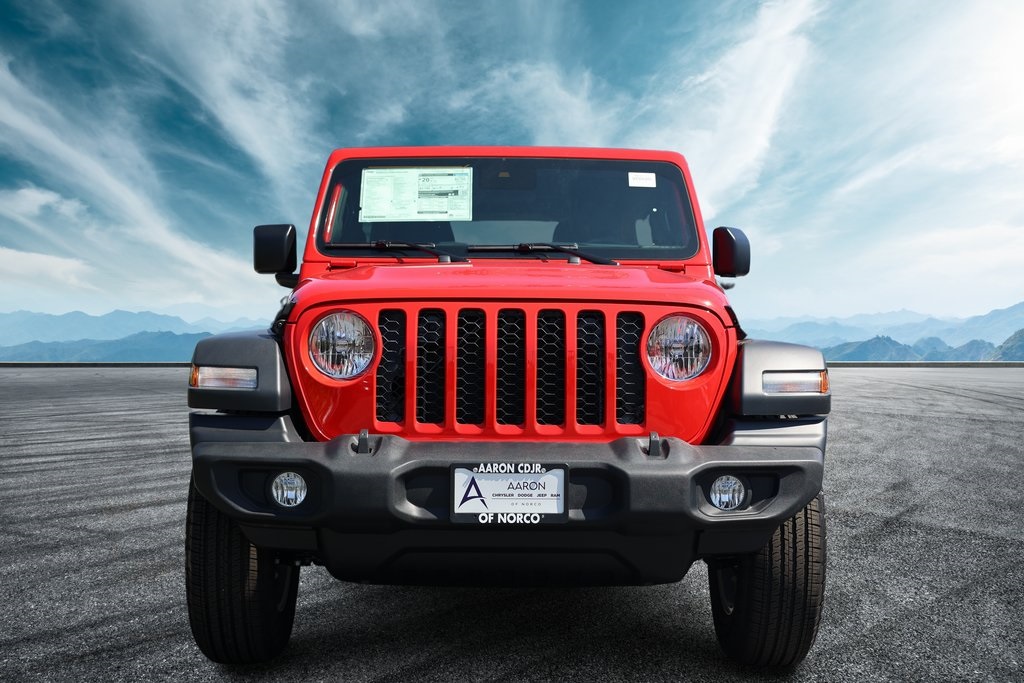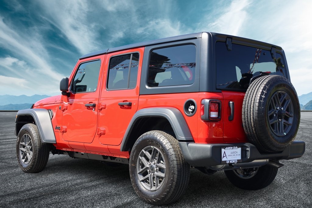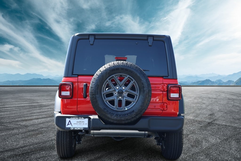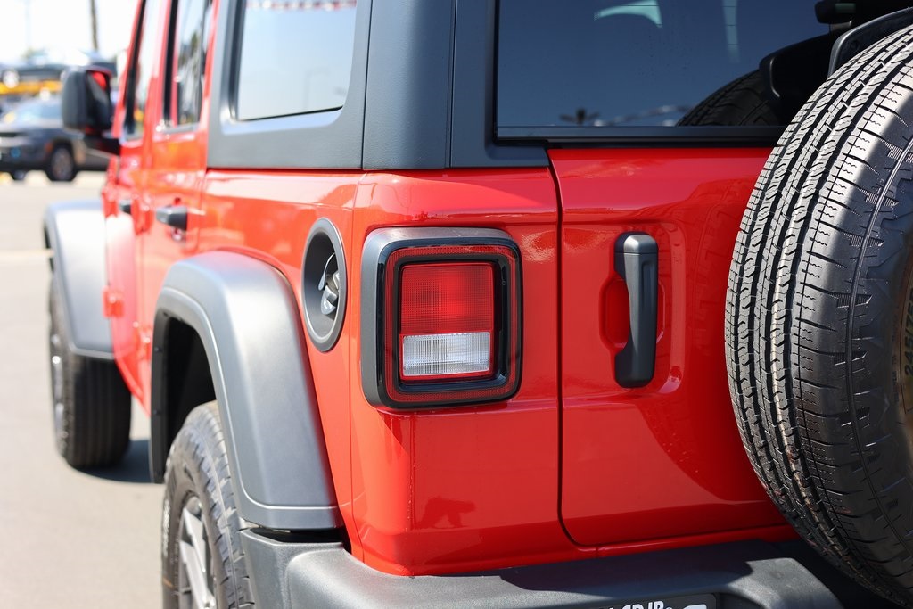 Red 2024 Jeep Wrangler Sport 4WD 8-Speed Automatic 2.0L I4 DOHC ABS brakes, Compass, Electronic Stability Control, Low tire pressure warning, ParkView Rear Back-Up Camera, Traction control.
