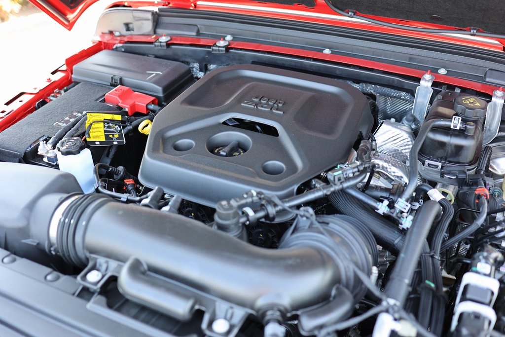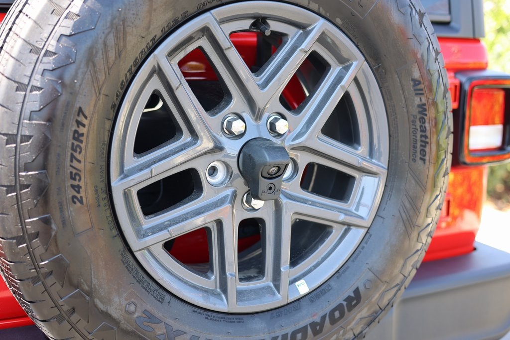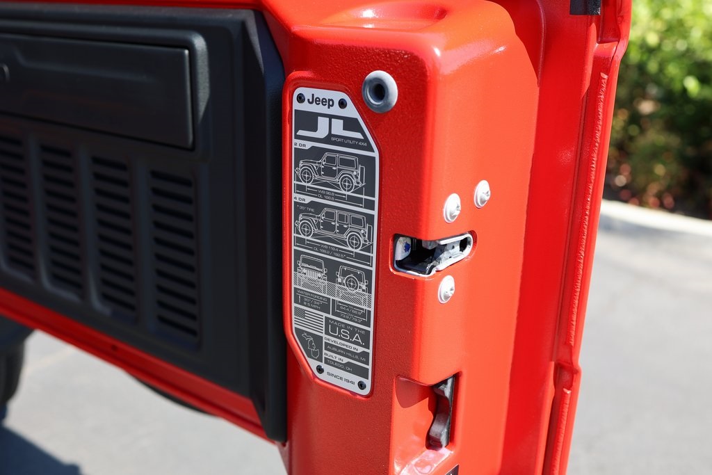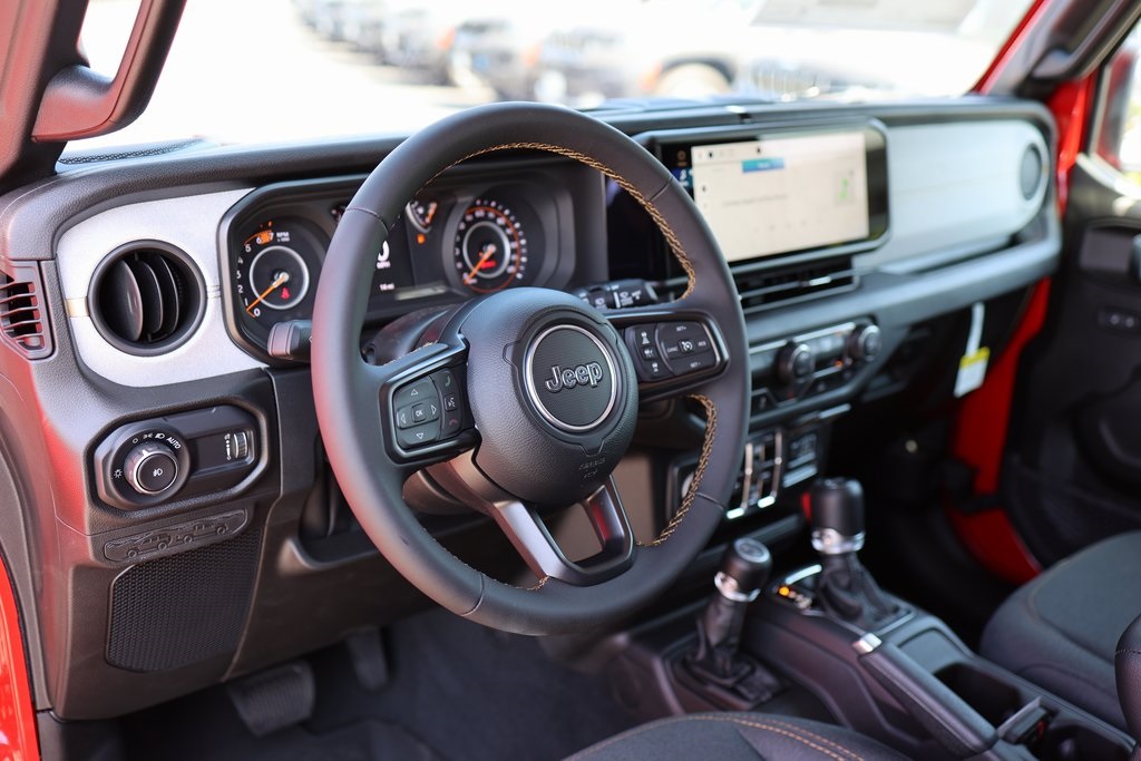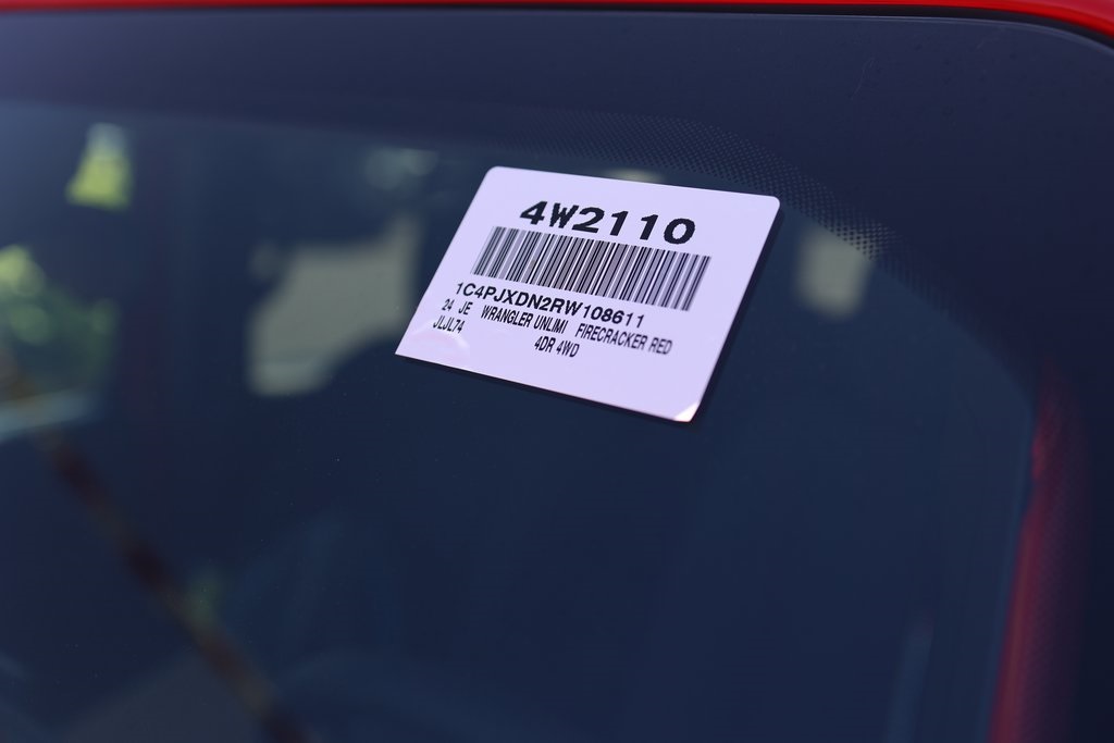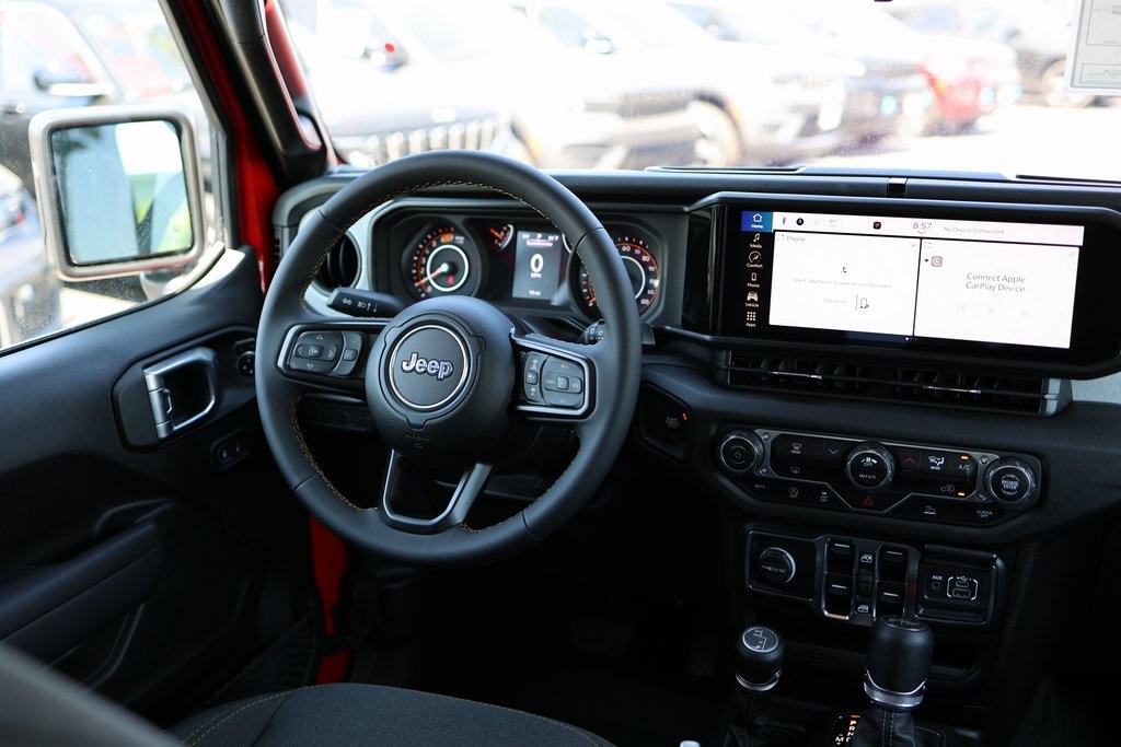 Red 2024 Jeep Wrangler Sport 4WD 8-Speed Automatic 2.0L I4 DOHC ABS brakes, Compass, Electronic Stability Control, Low tire pressure warning, ParkView Rear Back-Up Camera, Traction control.