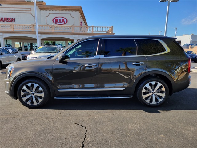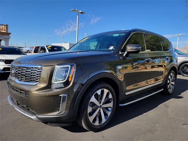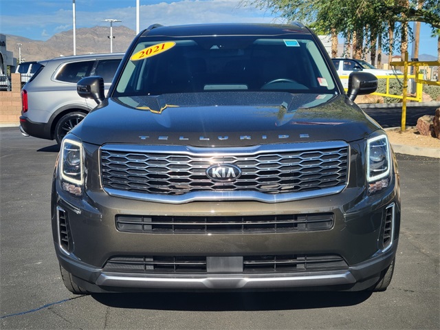 CARFAX One-Owner.Priced below KBB Fair Purchase Price!Odometer is 5715 miles below market average!20/26 City/Highway MPGMoss Green 2021 Kia Telluride S FWD 8-Speed Automatic 3.8L V6 DGI DOHC Dual CVVTIf you don't drive here, you can't save here!Awards: * JD Power Initial Quality Study (IQS) * JD Power Automotive Performance, Execution and Layout (APEAL) Study, Initial Quality Study (IQS)Price may not include recon fee. Kia Certified Pre-Owned Certified, 3.648 Axle Ratio, 3rd row seats: split-bench, 4-Wheel Disc Brakes, 6 Speakers, ABS brakes, Air Conditioning, Alloy wheels, AM/FM radio: SiriusXM, Apple CarPlay & Android Auto, Brake assist, Bumpers: body-color, Carpeted Floor Mats, Delay-off headlights, Driver door bin, Driver vanity mirror, Dual front impact airbags, Dual front side impact airbags, Electronic Stability Control, Emergency communication system: 911 Connect, Four wheel independent suspension, Front anti-roll bar, Front Bucket Seats, Front Center Armrest, Front reading lights, Fully automatic headlights, Heated door mirrors, Heated Front Bucket Seats, Heated front seats, Illuminated entry, Knee airbag, Leather Shift Knob, Leather steering wheel, Low tire pressure warning, Occupant sensing airbag, Outside temperature display, Overhead airbag, Overhead console, Panic alarm, Passenger door bin, Passenger vanity mirror, Power door mirrors, Power driver seat, Power moonroof, Power steering, Power windows, Radio data system, Radio: AM/FM/SIRIUS Display Audio, Rear air conditioning, Rear anti-roll bar, Rear reading lights, Rear window defroster, Rear window wiper, Reclining 3rd row seat, Remote keyless entry, Roof rack: rails only, Security system, SOFINO Leathertte Seat Trim, Speed control, Speed-sensing steering, Split folding rear seat, Spoiler, Steering wheel mounted audio controls, Tachometer, Telescoping steering wheel, Tilt steering wheel, Traction control, Trip computer, Turn signal indicator mirrors, Variably intermittent wipers, and Wheels: 7.5" x 20" Machined Finish Alloy.