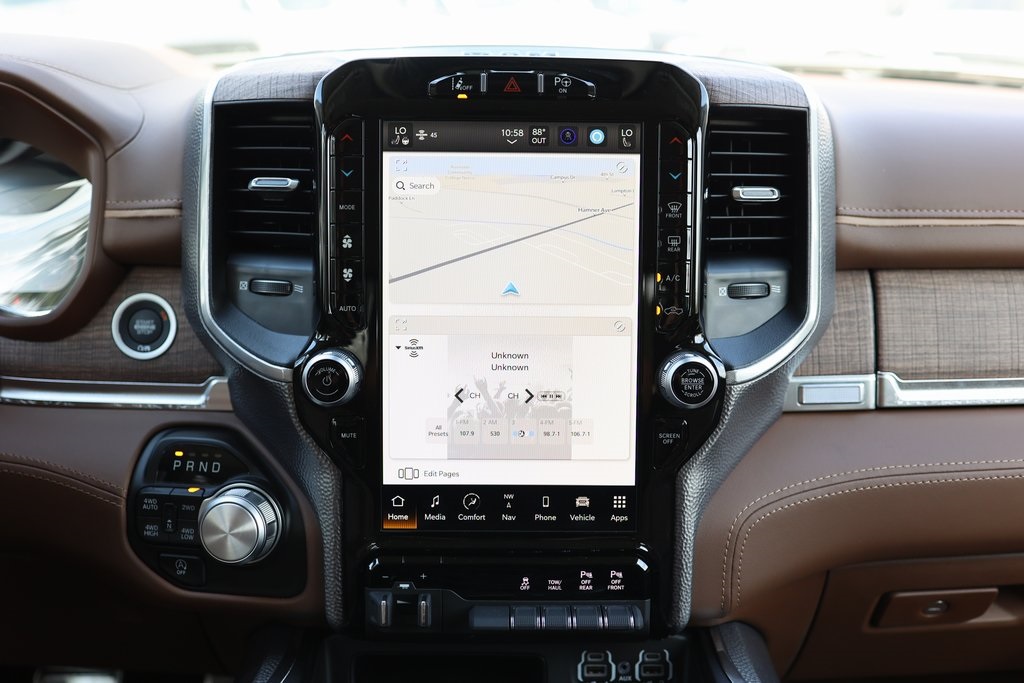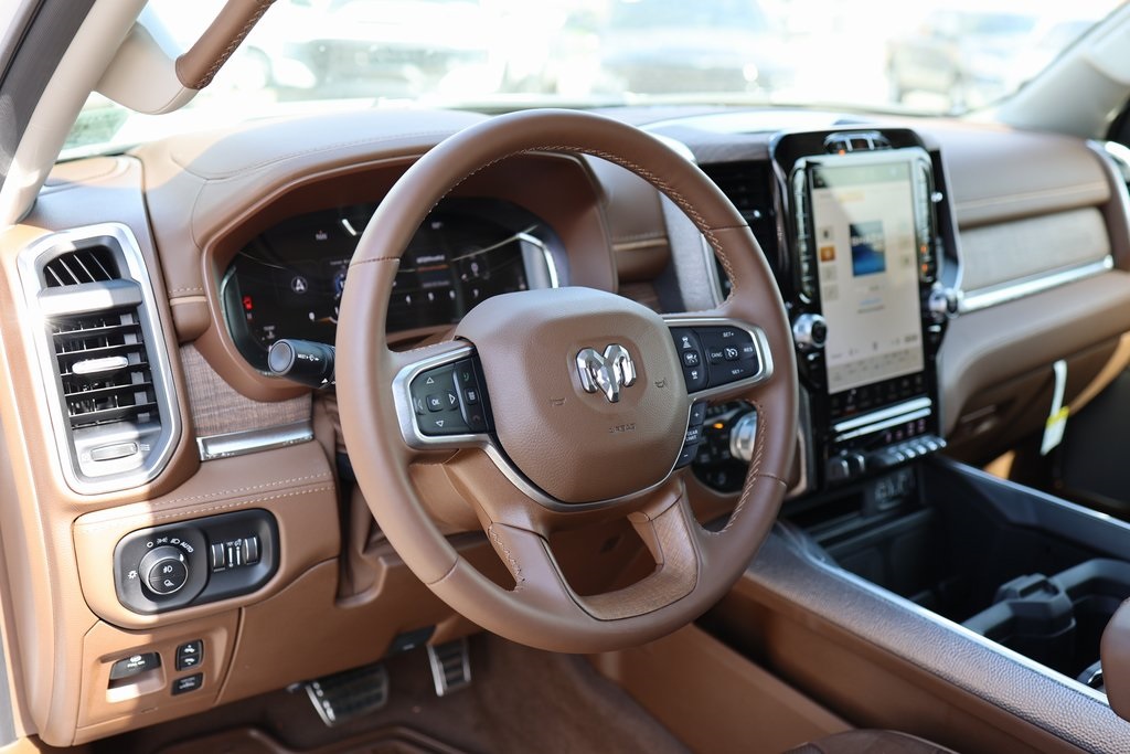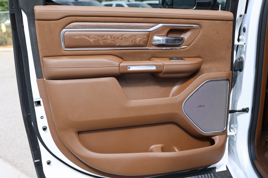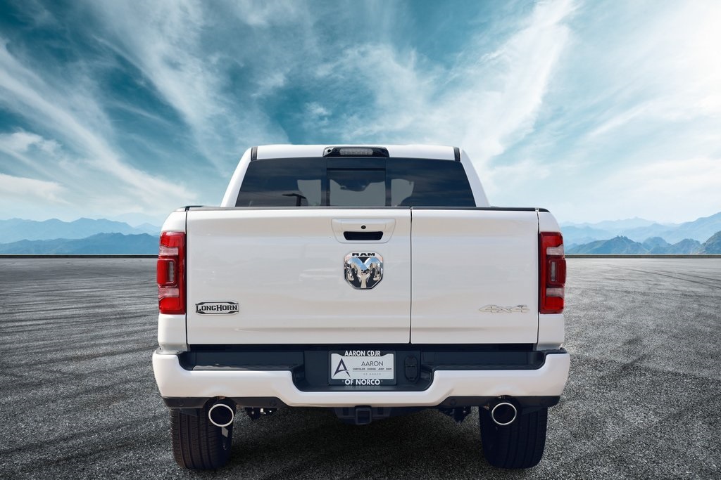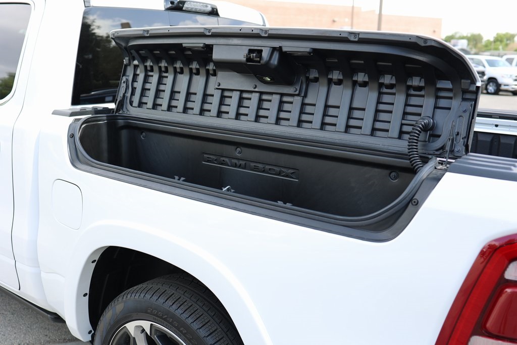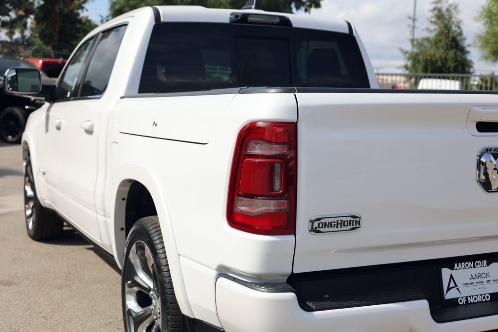 Ivory White Tri-Coat Pearlcoat 2023 Ram 1500 Laramie Longhorn 4WD 8-Speed Automatic HEMI 5.7L V8 Multi Displacement VVT eTorque #1 Seat Foam Cushion, 10 Speakers, 3 Rear Seat Head Restraints, 3.92 Rear Axle Ratio, 4 Way Front Headrests, Adaptive Cruise Control w/Stop & Go, Adjustable pedals, Anti-Spin Differential Rear Axle, Apple CarPlay/Android Auto, Auto-dimming door mirrors, Auto-dimming Rear-View mirror, Blind Spot & Cross Path Detection, Body Color Bumper Group, Body Color Front Bumper, Body Color Rear Bumper w/Step Pads, Bucket Seats, Compass, Digital Rearview Mirror, Driver Seat Memory, Exterior Mirrors w/Memory, Front Seat Back Map Pockets, Full Length Premium Floor Console, Garage door transmitter, harman/kardon 19 Speaker Premium Sound, Heads-Up Display, Heated Front Seats, Heated Second Row Seats, Heated Steering Wheel, Instrument Cluster Theme 6 - Limited Longhorn, Lane Keep Assist, LED CHMSL Lamp, Longhorn Level 1 Equipment Group, Memory seat, MOPAR Bright Pedal Kit, MOPAR Spray In Bedliner, Multi-Function Tailgate, Parallel & Perp Park Assist w/Stop, ParkSense Front/Rear Park Assist w/Stop, ParkView Rear Back-Up Camera, Pedal memory, Pedestrian Emergency Braking, Pick-Up Box Lighting, Power 4-Way Driver Lumbar Adjust, Power 4-Way Passenger Lumbar Adjust, Power 8-Way Driver & Passenger Seats, Power driver seat, Power Running Boards, Premium Leather Bucket Seats, Quick Order Package 27K Longhorn, Radio: Uconnect 5 Nav w/12.0" Display, Rear 60/40 Folding Split Recline Seat, Security system, Southfork Edition Group, Surround View Camera System, Tailgate Ajar Warning Lamp, Ventilated Front Seats, Ventilated Rear Seats, Wheels: 22" x 9" Polish/Painted w/Inserts, Wireless Charging Pad.