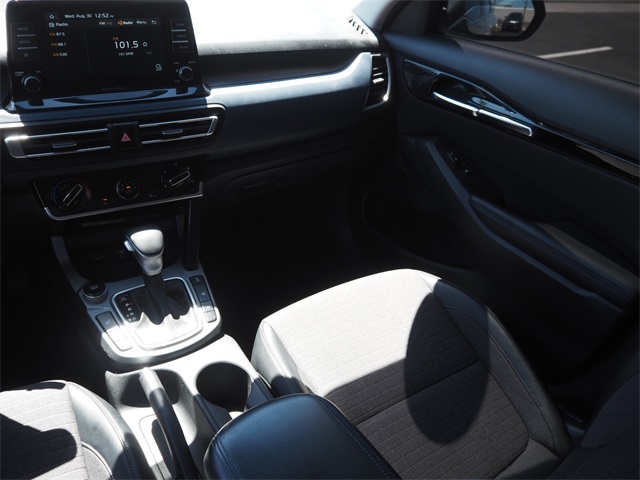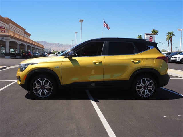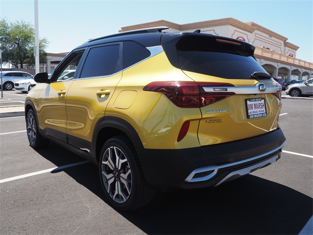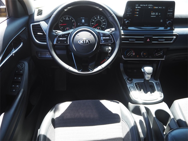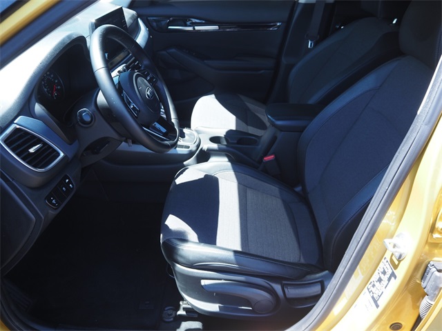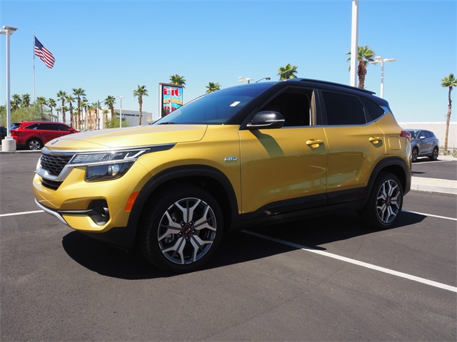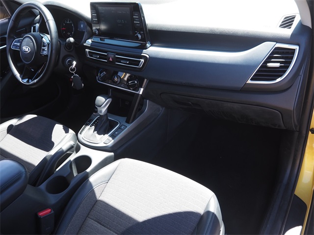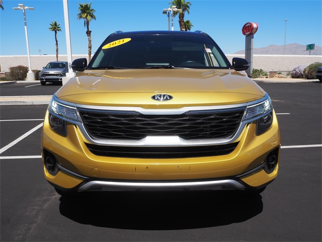 25/30 City/Highway MPGStarbright Yellow/Black Roof 2021 Kia Seltos S AWD 7-Speed Automatic I4If you don't drive here, you can't save here!Price may not include recon fee. Glossy Black Door Garnish Package (Glossy Black Door Garnishes), 18" Alloy Wheels, 4-Wheel Disc Brakes, 4.643 Axle Ratio, 6 Speakers, ABS brakes, Air Conditioning, Alloy wheels, AM/FM radio, Apple CarPlay & Android Auto, Brake assist, Bumpers: body-color, Cargo Mat, Carpeted Floor Mats, Delay-off headlights, Driver door bin, Driver vanity mirror, Dual front impact airbags, Dual front side impact airbags, Electronic Stability Control, Exterior Parking Camera Rear, Four wheel independent suspension, Front anti-roll bar, Front Bucket Seats, Front Center Armrest, Front fog lights, Front reading lights, Fully automatic headlights, Heated door mirrors, Heated Front Bucket Seats, Heated front seats, Illuminated entry, Leather Shift Knob, Low tire pressure warning, Occupant sensing airbag, Outside temperature display, Overhead airbag, Overhead console, Panic alarm, Passenger door bin, Passenger vanity mirror, Power door mirrors, Power steering, Power windows, Radio: AM/FM/MP3 Display Audio, Rear seat center armrest, Rear window defroster, Rear window wiper, Remote keyless entry, Remote Start, Roof rack: rails only, Security system, Sofino Premium Leatherette Seat Trim, Speed control, Speed-sensing steering, Split folding rear seat, Spoiler, Steering wheel mounted audio controls, Tachometer, Telescoping steering wheel, Tilt steering wheel, Traction control, Trip computer, Turn signal indicator mirrors, and Variably intermittent wipers.