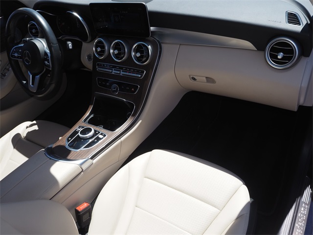 Priced below KBB Fair Purchase Price!Odometer is 17319 miles below market average!23/34 City/Highway MPGBlue 2019 Mercedes-Benz C-Class C 300 RWD 9-Speed Automatic 2.0L I4 TurbochargedIf you don't drive here, you can't save here!Awards: * JD Power Automotive Performance, Execution and Layout (APEAL) StudyPrice may not include recon fee. 4-way Power Driver's Lumbar Support, 4-Wheel Disc Brakes, 5 Speakers, ABS brakes, Air Conditioning, Alloy wheels, AM/FM radio, Anti-whiplash front head restraints, Auto tilt-away steering wheel, Auto-dimming door mirrors, Auto-dimming Rear-View mirror, Automatic temperature control, Bodyside moldings, Brake assist, Bumpers: body-color, Child-Seat-Sensing Airbag, Compass, Delay-off headlights, Driver door bin, Driver vanity mirror, Dual front impact airbags, Dual front side impact airbags, Electronic Stability Control, Emergency communication system, Exterior Parking Camera Rear, Four wheel independent suspension, Front anti-roll bar, Front Bucket Seats, Front Center Armrest, Front dual zone A/C, Front reading lights, Fully automatic headlights, Garage door transmitter: Homelink, Genuine wood console insert, Genuine wood dashboard insert, Genuine wood door panel insert, HD Radio, Head restraints memory, Heated door mirrors, Illuminated entry, Knee airbag, Low tire pressure warning, MB-Tex Upholstery, Memory seat, Occupant sensing airbag, Outside temperature display, Overhead airbag, Overhead console, Panic alarm, Passenger door bin, Passenger vanity mirror, Power adjustable front head restraints, Power door mirrors, Power driver seat, Power Front Seats w/Driver Memory, Power moonroof, Power passenger seat, Power steering, Power windows, Radio data system, Radio: Audio 20, Rain sensing wipers, Rear anti-roll bar, Rear fog lights, Rear reading lights, Rear seat center armrest, Rear side impact airbag, Rear window defroster, Remote keyless entry, Security system, Speed control, Speed-sensing steering, Split folding rear seat, Steering wheel memory, Steering wheel mounted audio controls, Tachometer, Telescoping steering wheel, Tilt steering wheel, Traction control, Trip computer, Turn signal indicator mirrors, Variably intermittent wipers, Weather band radio, and Wheels: 17" Twin 5-Spoke.
