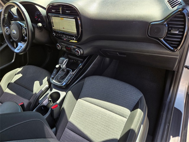 Odometer is 4318 miles below market average!28/33 City/Highway MPGSparkling Silver 2021 Kia Soul EX FWD CVT 2.0L I4 MPI DOHC 16V LEV3-SULEV30 147hpIf you don't drive here, you can't save here!Awards: * JD Power Initial Quality Study (IQS)Price may not include recon fee. 4-Wheel Disc Brakes, 6 Speakers, ABS brakes, Air Conditioning, Alloy wheels, AM/FM radio: SiriusXM, Apple CarPlay & Android Auto, Automatic temperature control, Brake assist, Bumpers: body-color, Cargo Net, Cargo Tray, Carpeted Floor Mats, Delay-off headlights, Driver door bin, Driver vanity mirror, Dual front impact airbags, Dual front side impact airbags, Electronic Stability Control, Emergency communication system: UVO link, Exterior Parking Camera Rear, Front anti-roll bar, Front Bucket Seats, Front Center Armrest, Front dual zone A/C, Front fog lights, Front reading lights, Front wheel independent suspension, Fully automatic headlights, Heated door mirrors, Heated Front Bucket Seats, Heated front seats, Leather Shift Knob, Leather steering wheel, Low tire pressure warning, Navigation System, Occupant sensing airbag, Outside temperature display, Overhead airbag, Overhead console, Passenger door bin, Passenger vanity mirror, Power door mirrors, Power driver seat, Power moonroof, Power steering, Power windows, Premium Cloth Seat Trim, Radio: AM/FM/MP3 Audio System, Rear seat center armrest, Rear window defroster, Rear window wiper, Remote keyless entry, Speed control, Speed-sensing steering, Split folding rear seat, Steering wheel mounted audio controls, Tachometer, Telescoping steering wheel, Tilt steering wheel, Traction control, Trip computer, Variably intermittent wipers, and Wheels: 17" x 6.5 Alloy.