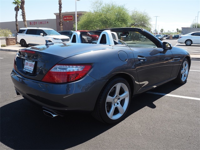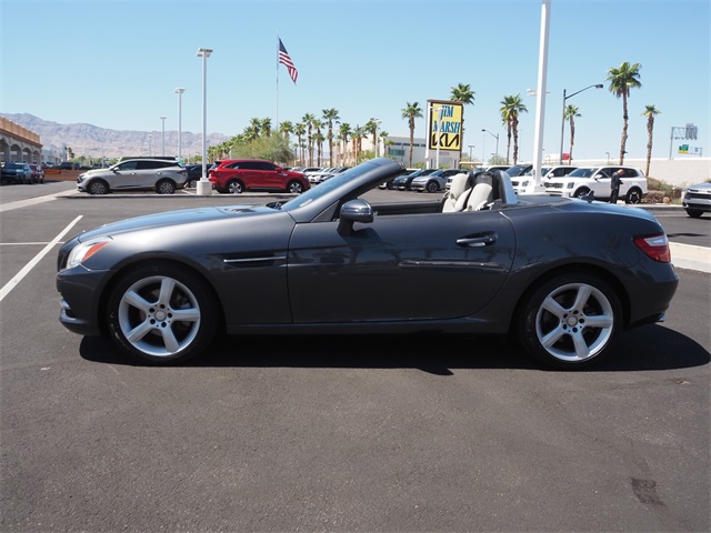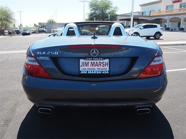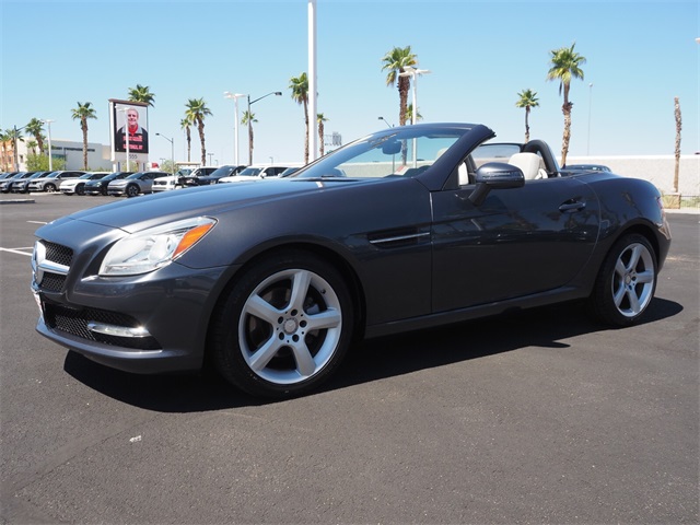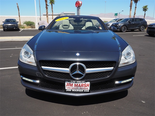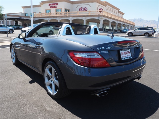 Recent Arrival!Gray 2012 Mercedes-Benz SLK SLK 250 RWD 1.8L I4 DOHC TurbochargedIf you don't drive here, you can't save here!Awards: * JD Power APEAL StudyPrice may not include recon fee. 17" 5-Spoke Design Wheels, 4-Wheel Disc Brakes, 8 Speakers, ABS brakes, Air Conditioning, Alloy wheels, AM/FM radio, Anti-whiplash front head restraints, Auto tilt-away steering wheel, Auto-dimming door mirrors, Auto-dimming Rear-View mirror, Brake assist, Bumpers: body-color, CD player, Child-Seat-Sensing Airbag, Compass, Convertible HardTop, Convertible roof lining, Delay-off headlights, Driver door bin, Driver vanity mirror, Dual front impact airbags, Dual front side impact airbags, Electronic Stability Control, Emergency communication system: mbrace, Four wheel independent suspension, Front anti-roll bar, Front Bucket Seats, Front Center Armrest, Front reading lights, Fully automatic headlights, Garage door transmitter: Homelink, Glass rear window, Heated door mirrors, Illuminated entry, Integrated roll-over protection, Knee airbag, Leather Shift Knob, Leather steering wheel, Low tire pressure warning, MB-Tex Upholstery, Memory seat, Occupant sensing airbag, Outside temperature display, Overhead airbag, Overhead console, Panic alarm, Passenger door bin, Passenger vanity mirror, Power convertible roof, Power door mirrors, Power driver seat, Power passenger seat, Power steering, Power windows, Radio data system, Radio: HD w/8-Speaker Audio System, Rain sensing wipers, Rear anti-roll bar, Rear fog lights, Rear window defroster, Remote keyless entry, Security system, Speed control, Speed-sensing steering, Sport Bucket Seats, Sport steering wheel, Steering wheel memory, Steering wheel mounted audio controls, Tachometer, Telescoping steering wheel, Tilt steering wheel, Traction control, Trip computer, Turn signal indicator mirrors, Variably intermittent wipers, and Weather band radio.