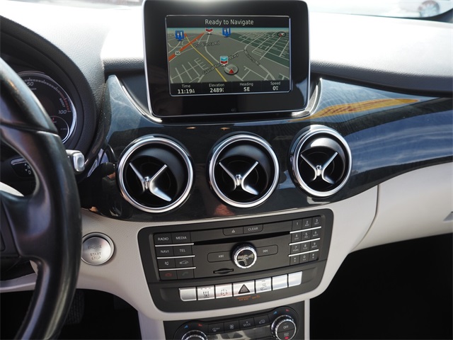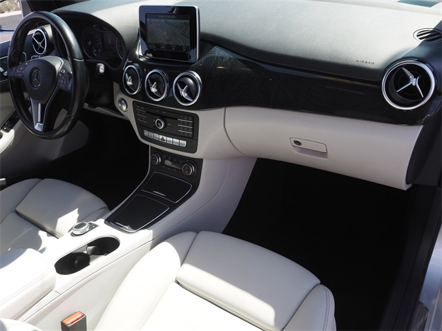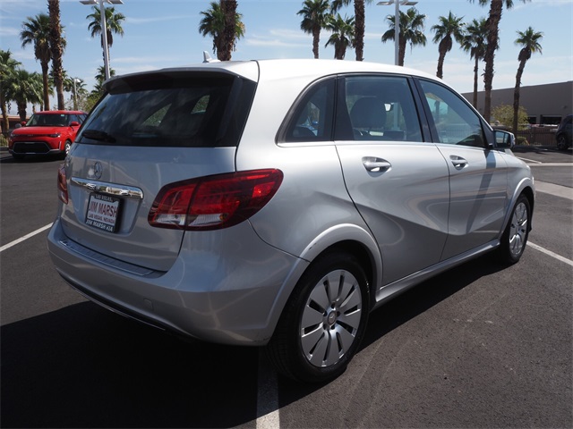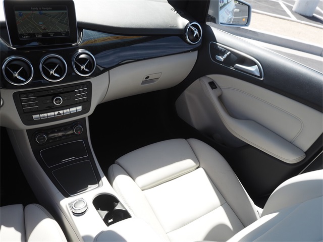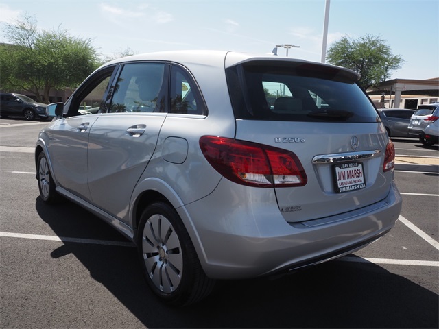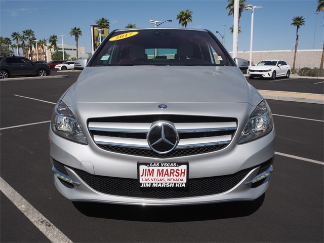 85/82 City/Highway MPGSilver 2017 Mercedes-Benz B-Class B 250e FWD Single-Speed Automatic Electric MotorIf you don't drive here, you can't save here!Price may not include recon fee. 4-Wheel Disc Brakes, 8 Speakers, ABS brakes, Air Conditioning, Alloy wheels, AM/FM radio, Anti-whiplash front head restraints, Automatic temperature control, Brake assist, Bumpers: body-color, CD player, Delay-off headlights, Driver door bin, Driver vanity mirror, Dual front impact airbags, Dual front side impact airbags, Electronic Stability Control, Four wheel independent suspension, Front anti-roll bar, Front Bucket Seats, Front Center Armrest, Front dual zone A/C, Front reading lights, Fully automatic headlights, Heated door mirrors, Illuminated entry, Knee airbag, Leather Shift Knob, Low tire pressure warning, MB-Tex Upholstery, Memory seat, Occupant sensing airbag, Outside temperature display, Overhead airbag, Panic alarm, Passenger door bin, Passenger vanity mirror, Power adjustable front head restraints, Power door mirrors, Power driver seat, Power passenger seat, Power steering, Power windows, Radio data system, Radio: Audio AM/FM/CD w/MB Apps, Rain sensing wipers, Rear anti-roll bar, Rear fog lights, Rear reading lights, Rear seat center armrest, Rear side impact airbag, Rear window defroster, Rear window wiper, Remote keyless entry, Security system, Speed control, Speed-sensing steering, Split folding rear seat, Spoiler, Steering wheel mounted audio controls, Telescoping steering wheel, Tilt steering wheel, Traction control, Trip computer, Turn signal indicator mirrors, Variably intermittent wipers, Weather band radio, and Wheels: 17" x 7J 10-Spoke Design Alloy.