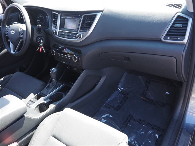 CARFAX One-Owner.23/30 City/Highway MPGGray 2017 Hyundai Tucson SE FWD 6-Speed Automatic with Shiftronic 2.0L DOHCIf you don't drive here, you can't save here!Awards: * 2017 KBB.com 10 Best SUVs Under $25,000 * 2017 KBB.com 10 Most Awarded BrandsPrice may not include recon fee. 17" Alloy Wheels, 4-Wheel Disc Brakes, 6 Speakers, ABS brakes, Air Conditioning, Alloy wheels, AM/FM radio: SiriusXM, AM/FM/CD/MP3 Audio System, Axle Ratio: 3.51, Brake assist, Bumpers: body-color, CD player, Delay-off headlights, Driver door bin, Driver vanity mirror, Dual front impact airbags, Dual front side impact airbags, Electronic Stability Control, Exterior Parking Camera Rear, Four wheel independent suspension, Front anti-roll bar, Front Bucket Seats, Front Center Armrest, Front reading lights, Fully automatic headlights, Heated door mirrors, Illuminated entry, Low tire pressure warning, Occupant sensing airbag, Outside temperature display, Overhead airbag, Overhead console, Panic alarm, Passenger door bin, Passenger vanity mirror, Power door mirrors, Power steering, Power windows, Rear anti-roll bar, Rear seat center armrest, Rear window defroster, Rear window wiper, Remote keyless entry, Security system, Speed control, Speed-sensing steering, Split folding rear seat, Spoiler, Steering wheel mounted audio controls, Tachometer, Telescoping steering wheel, Tilt steering wheel, Traction control, Trip computer, Variably intermittent wipers, and YES Essentials Cloth Seat Trim.